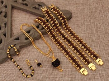₹2,100.00Original price was: ₹2,100.00.₹1,099.00Current price is: ₹1,099.00. - Combo 5 pro gold plated mala bracelet chain 2pendents_Rated 5.00 out of 5