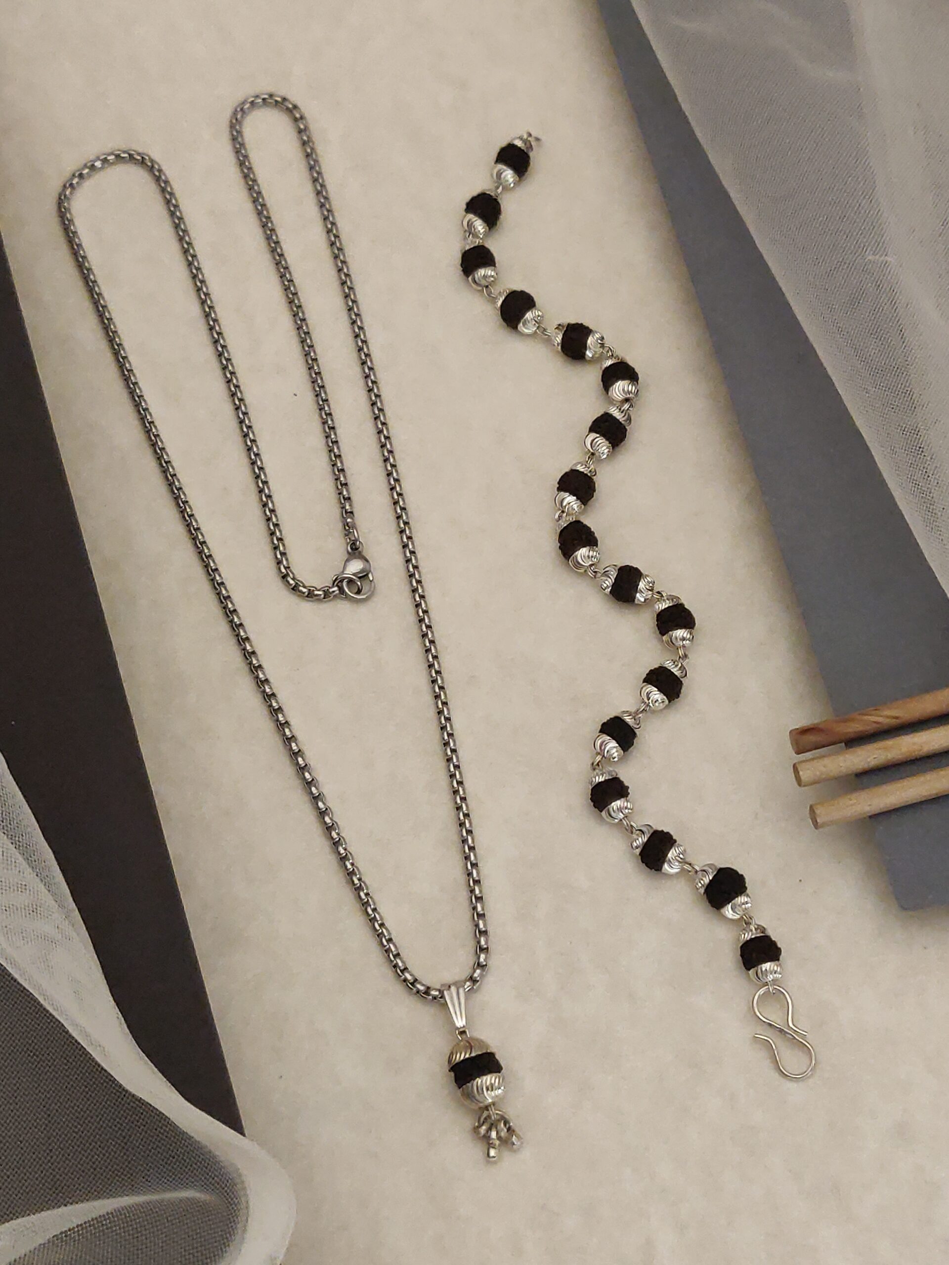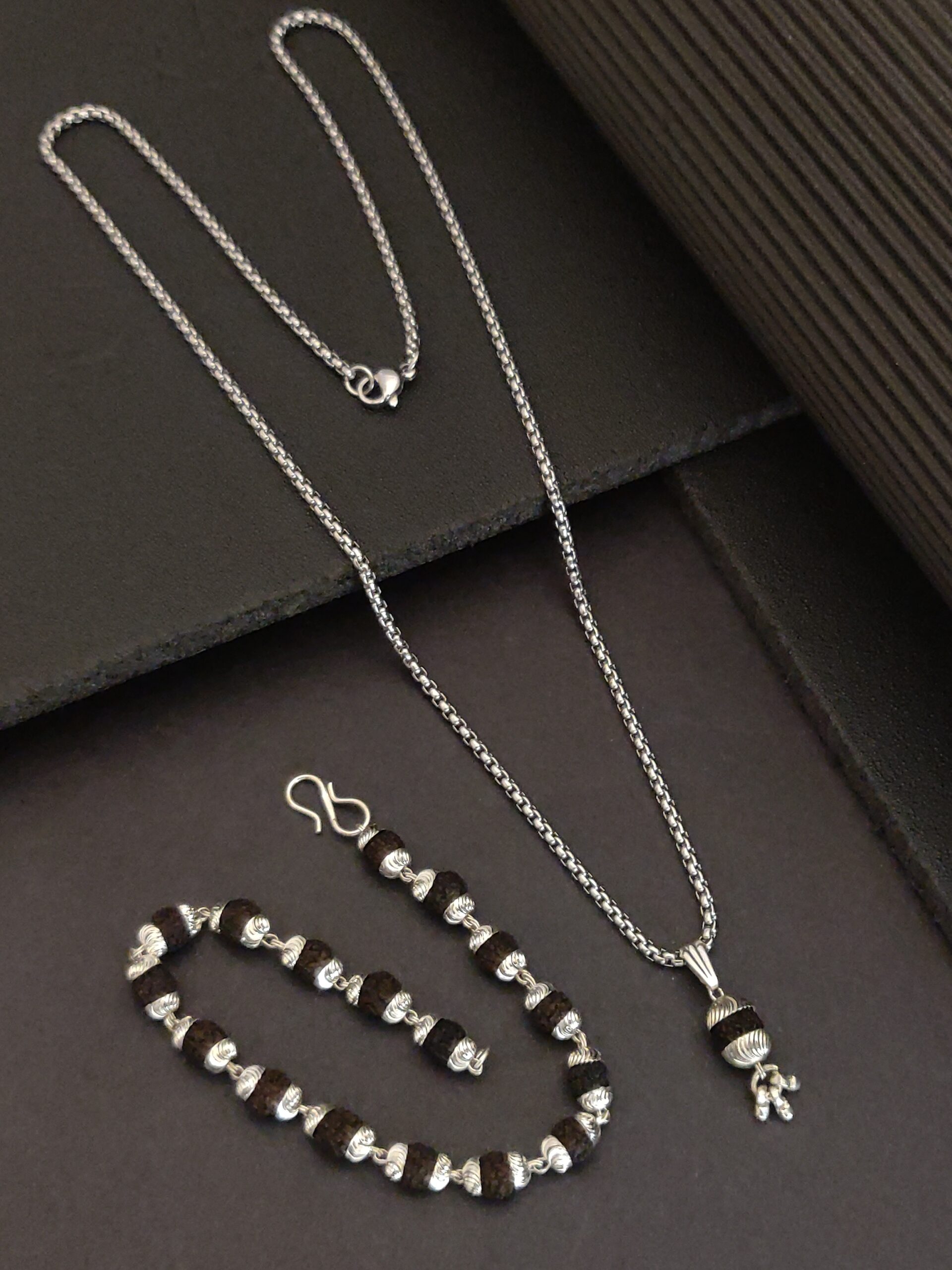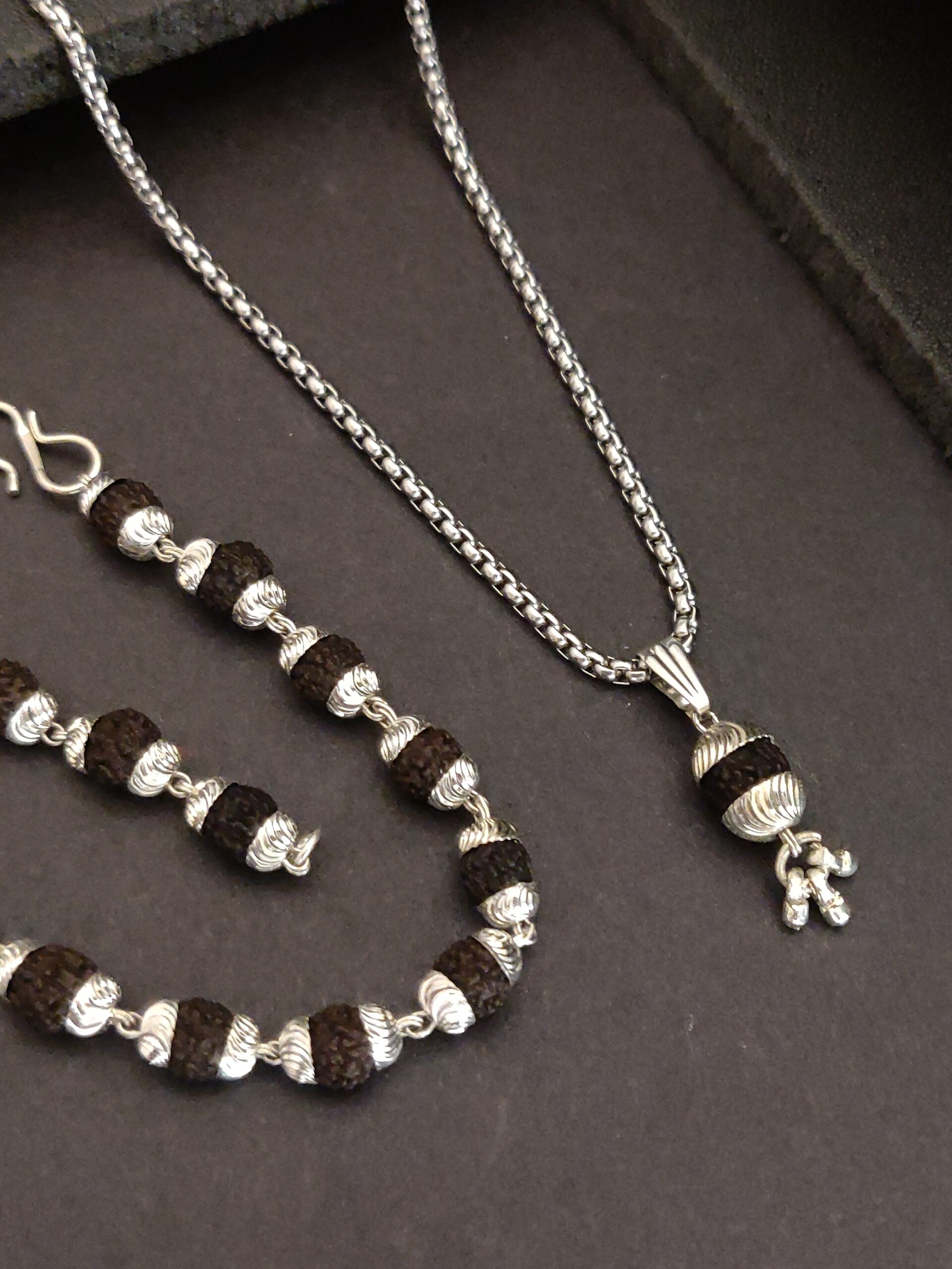 Our Silver Plated Rudraksha Bracelet+chain+pendent offers a perfect harmony of spirituality and elegance.