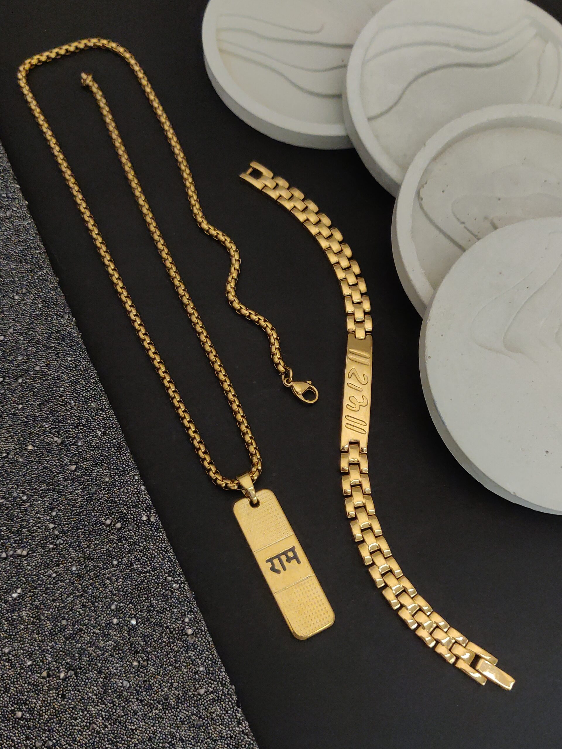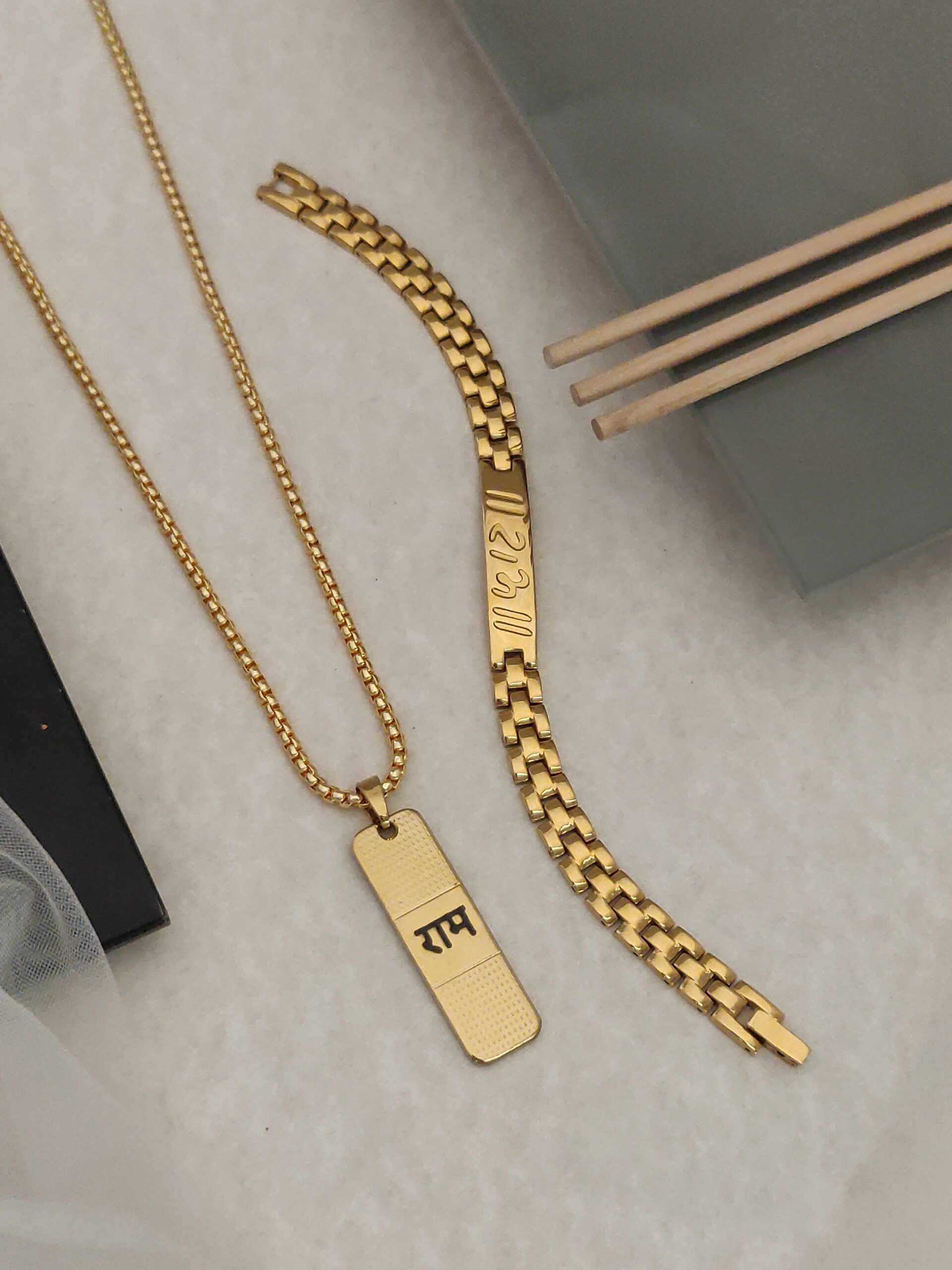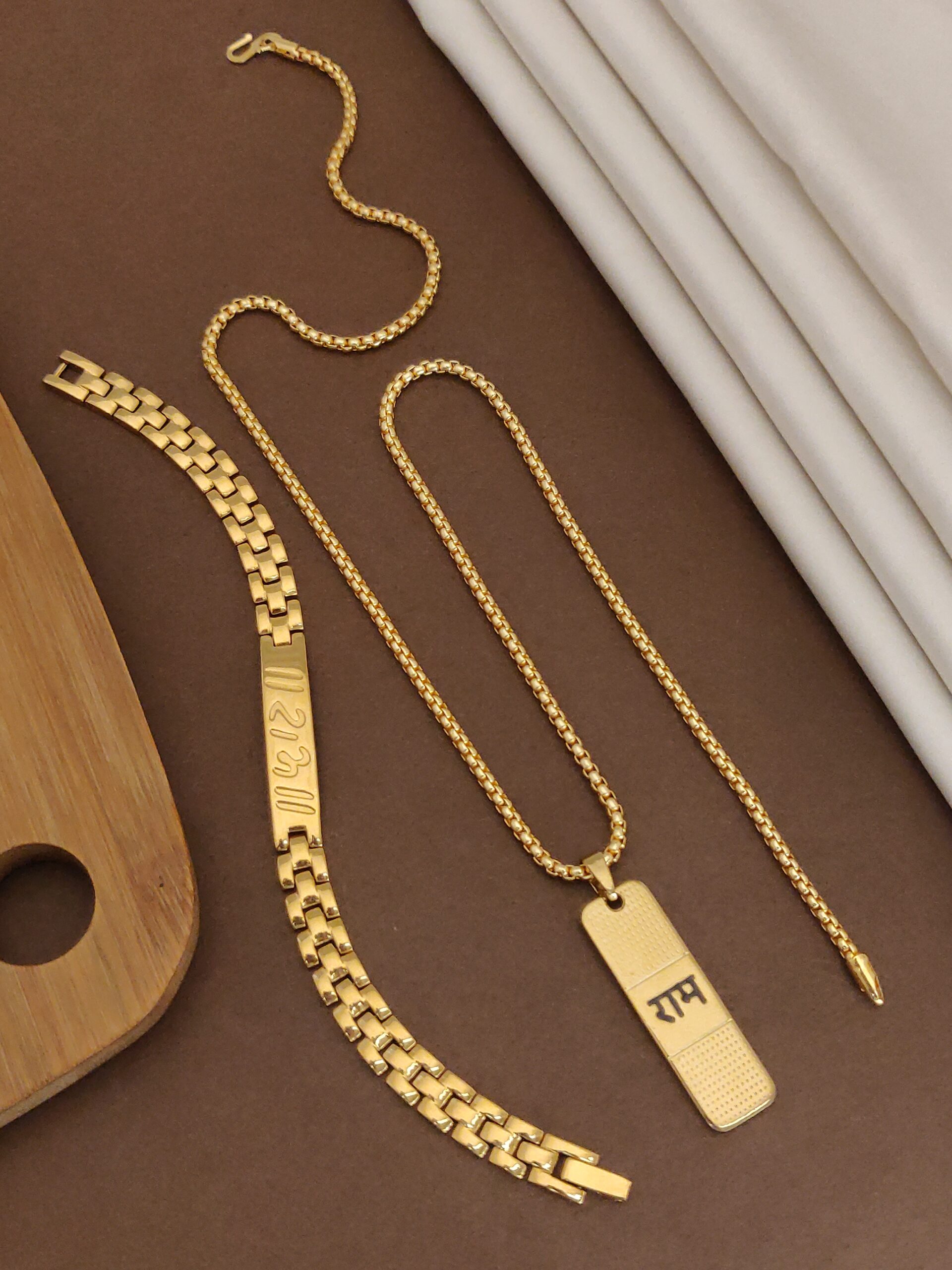 Elevate your spiritual style with this stunning combo featuring the Gold-Plated Slim Design Unisex Ram Bracelet and a beautifully crafted Gold-Plated Ram Pendant on a sleek chain.