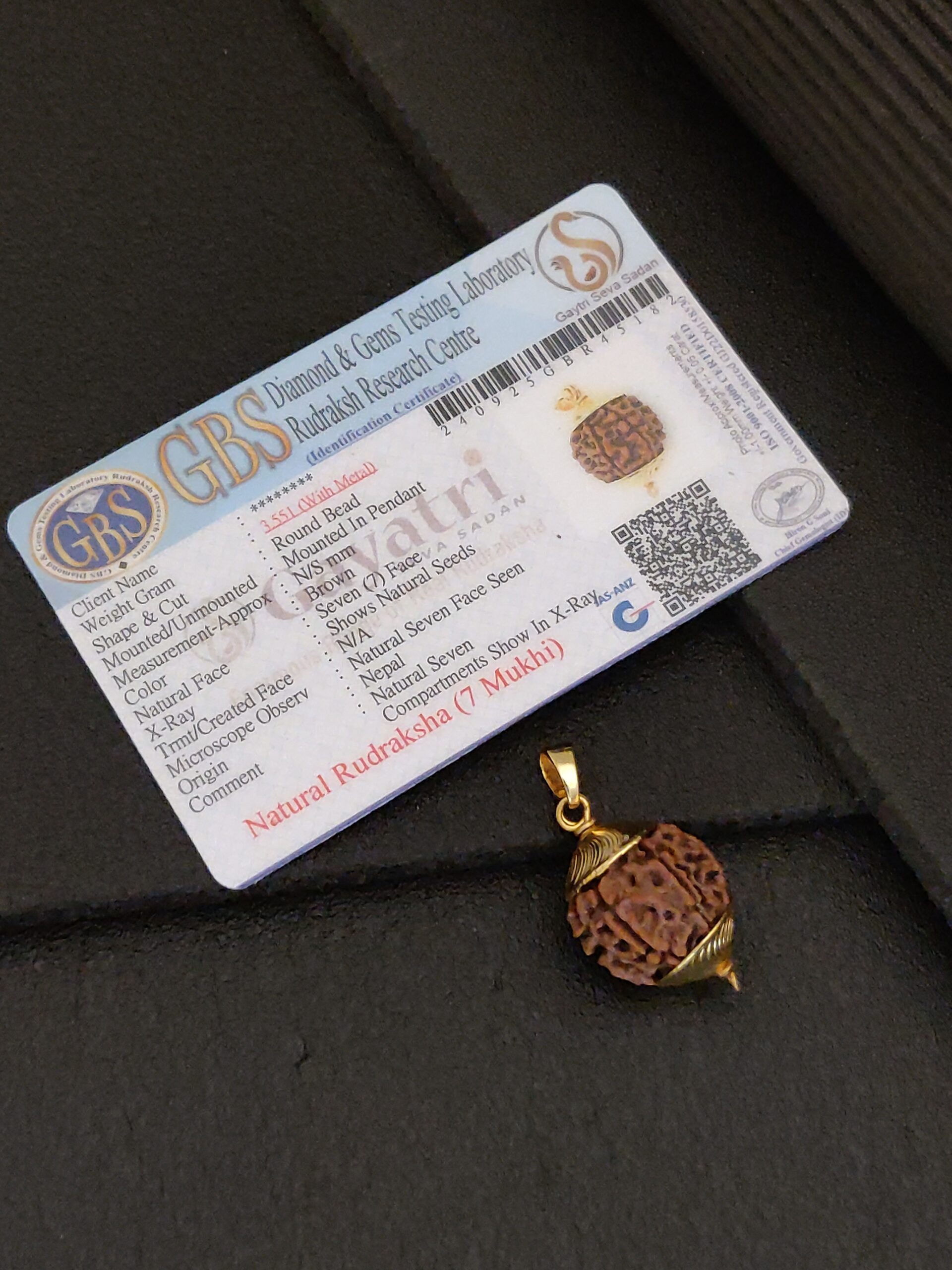 Gold Plated 7 Mukhi Rudraksha Pendant (With Free Chain)