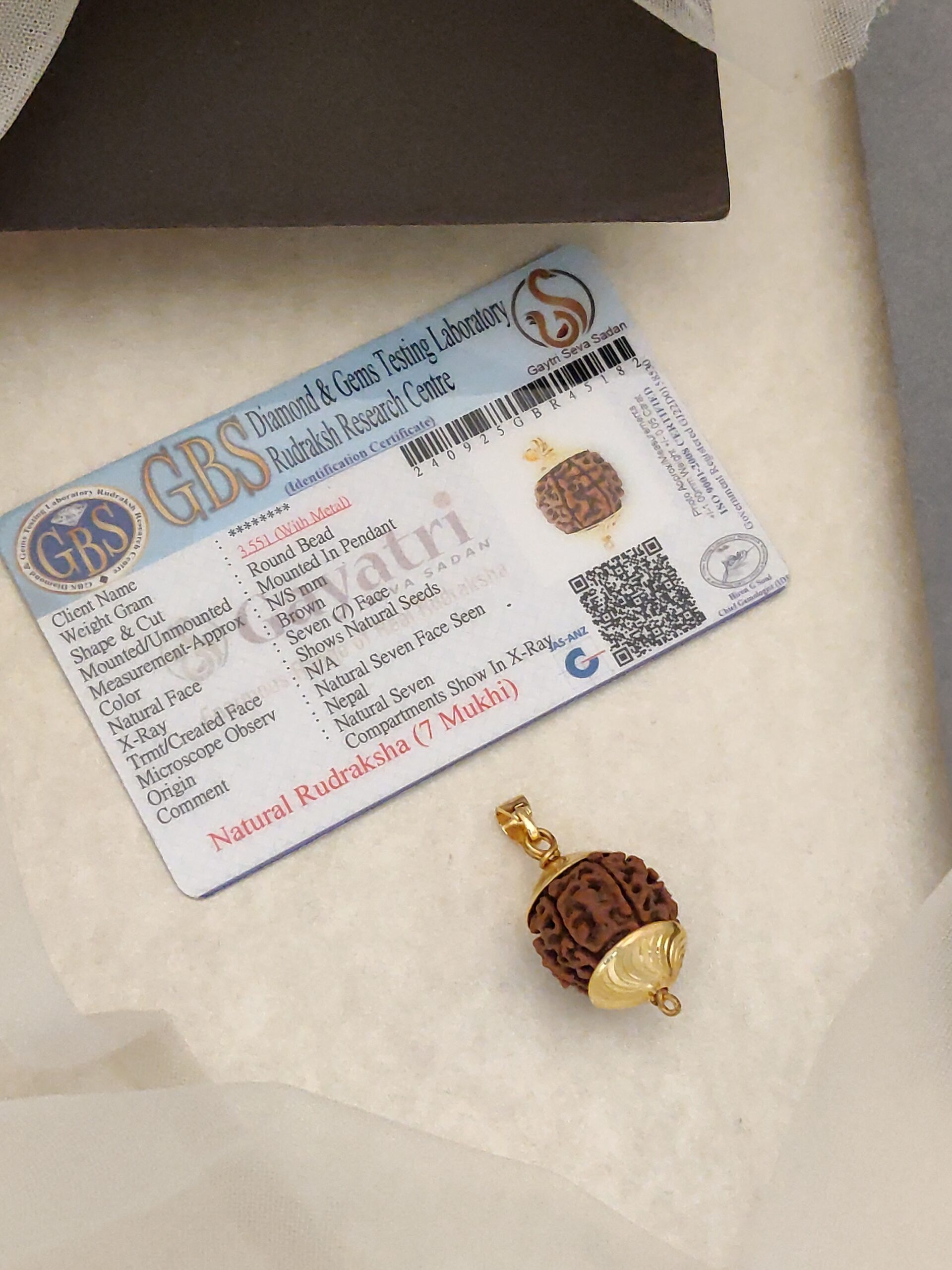 Gold Plated 7 Mukhi Rudraksha Pendant