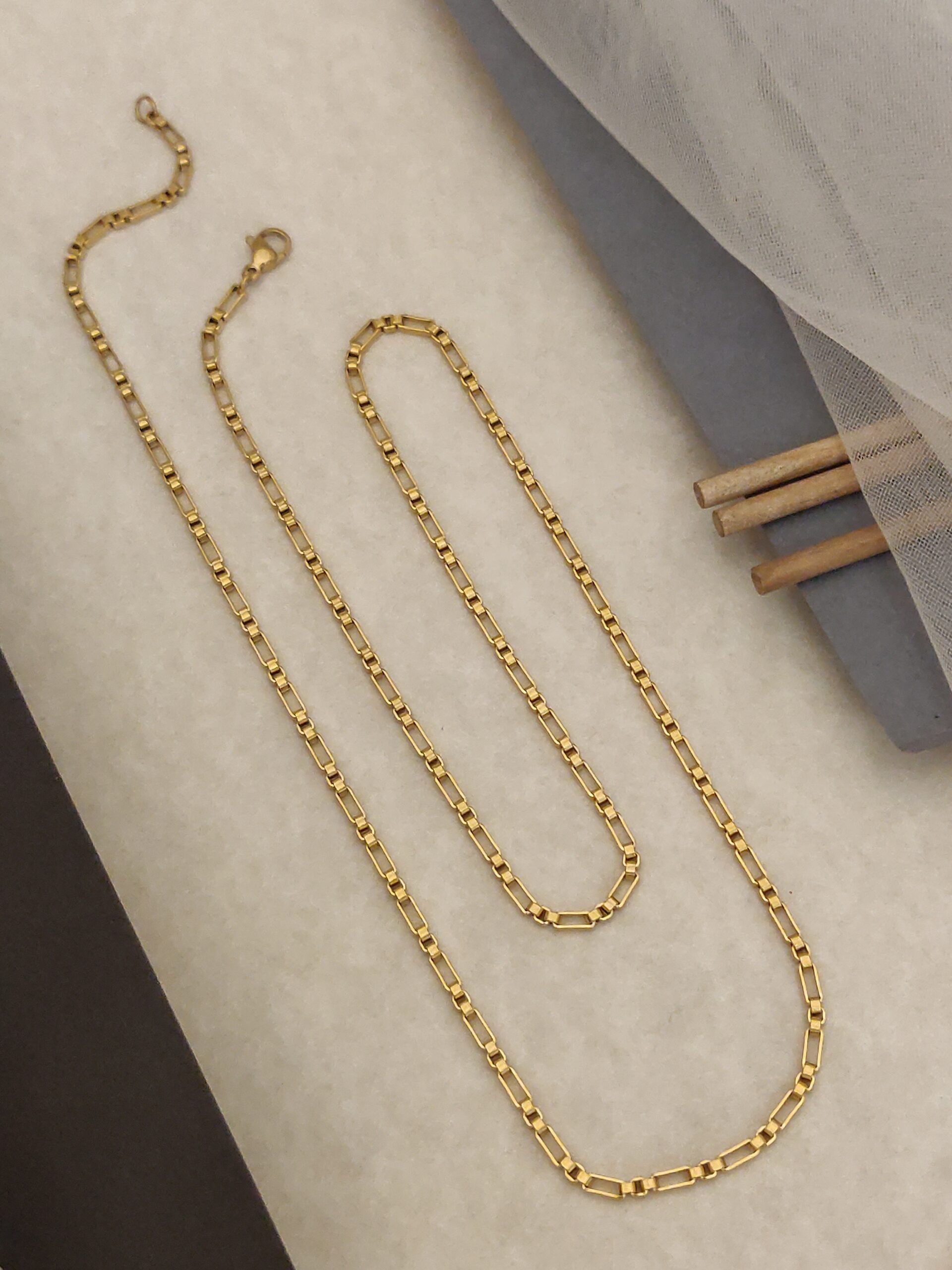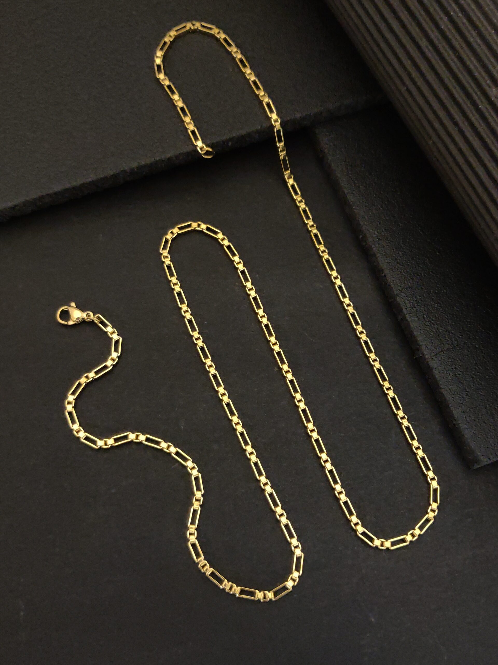 हर चेन को high-quality gold plating से तैयार किया गया है, जो देखने में बिल्कुल असली सोने जैसा चमकता है। इसका finishing smooth और royal look देने वाला है। साथ ही waterproof होने की वजह से यह पसीने, बारिश या रोज़मर्रा की नमी से खराब नहीं होती।