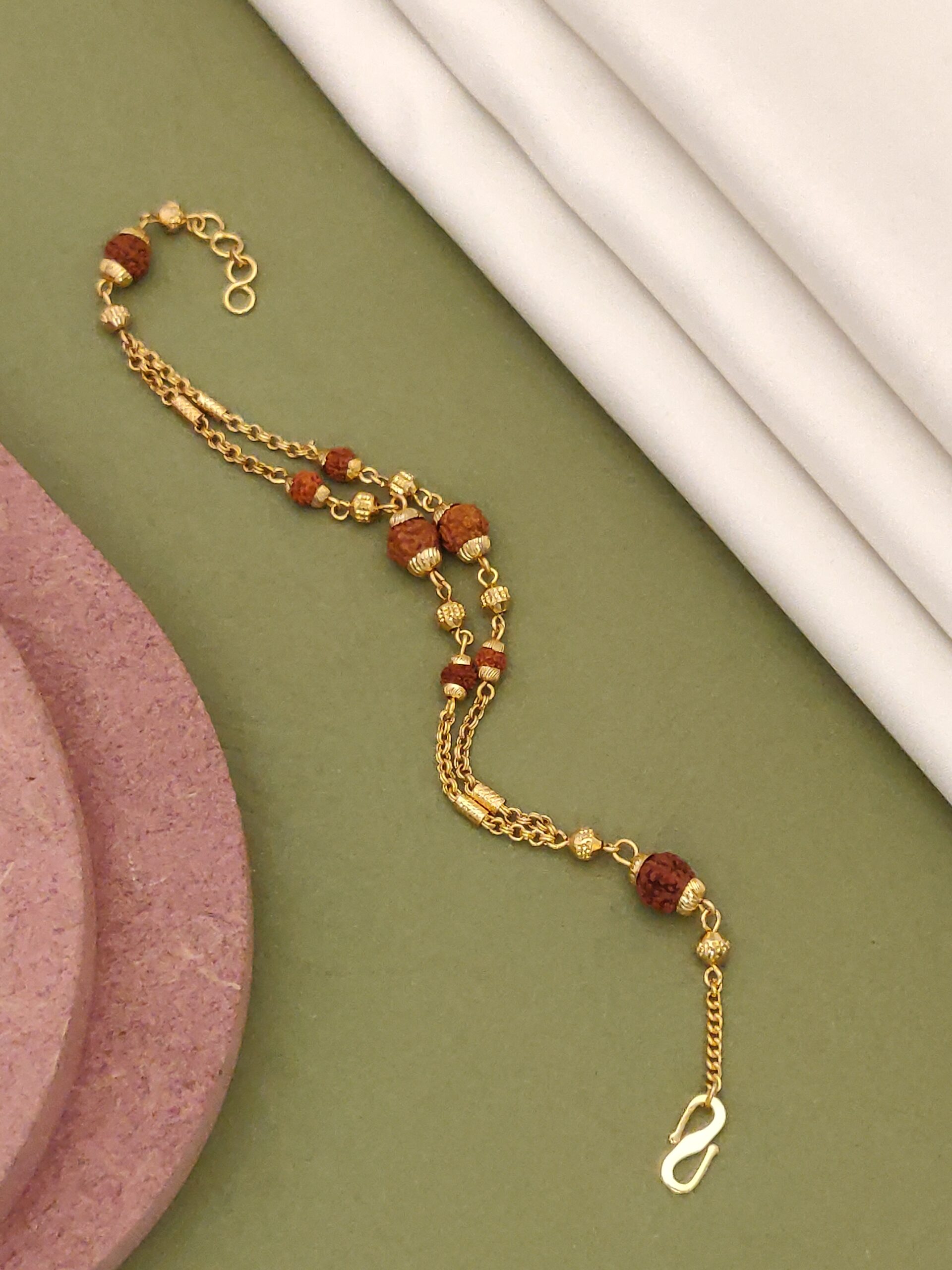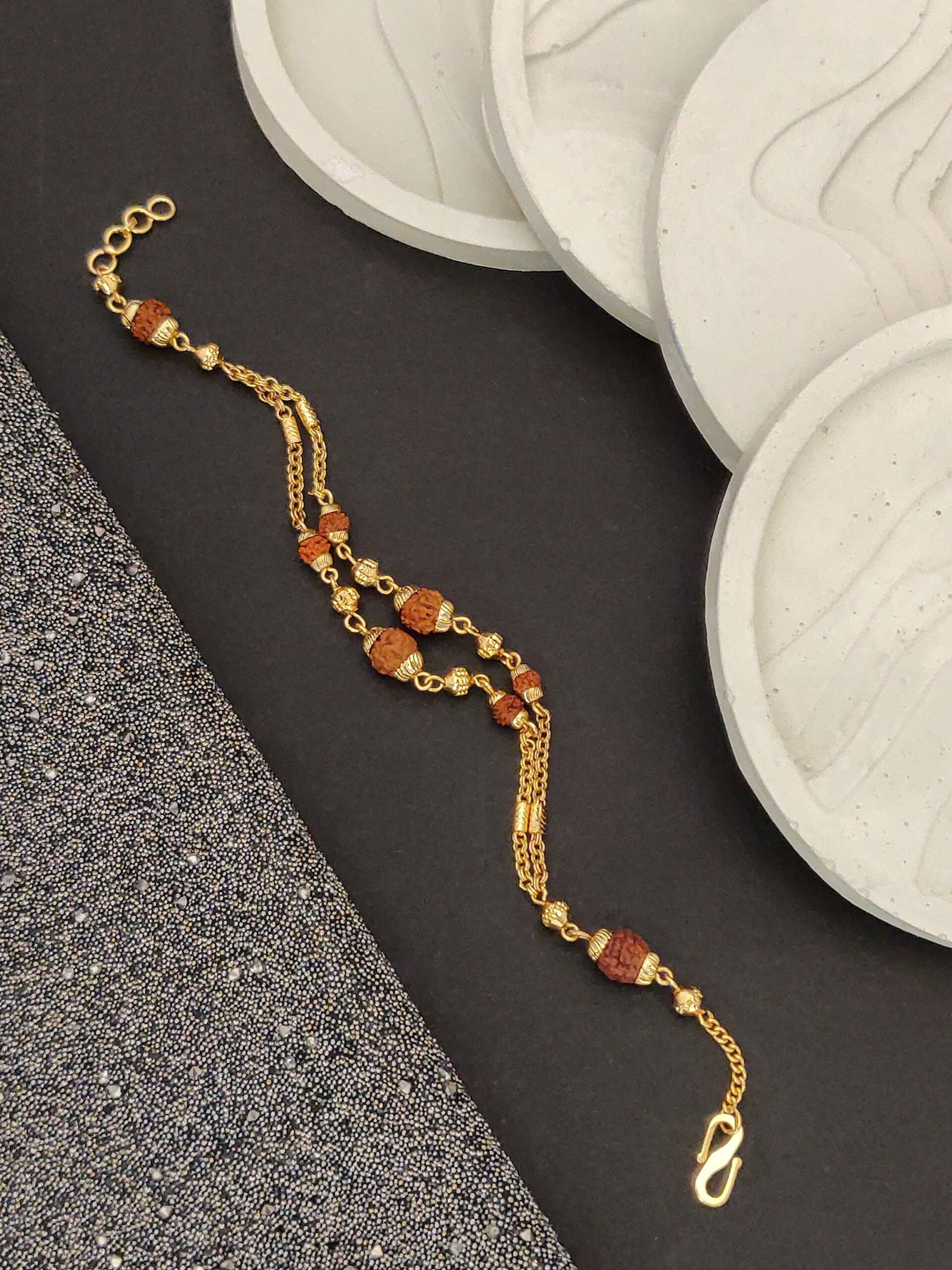 Discover the perfect blend of elegance and spirituality with our Elegant Gold-Plated Cubio Rudraksha Bracelet for woman.