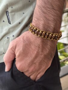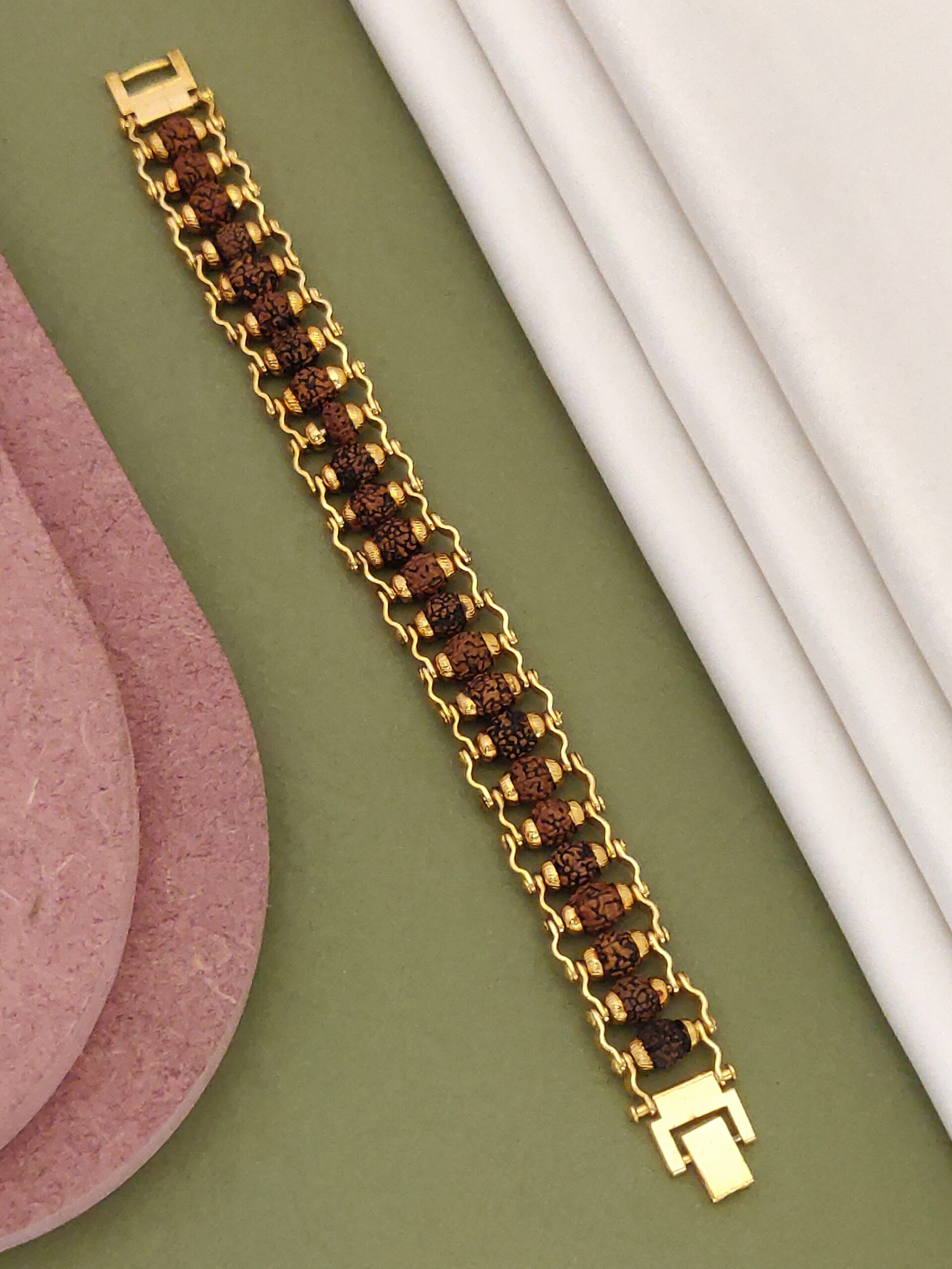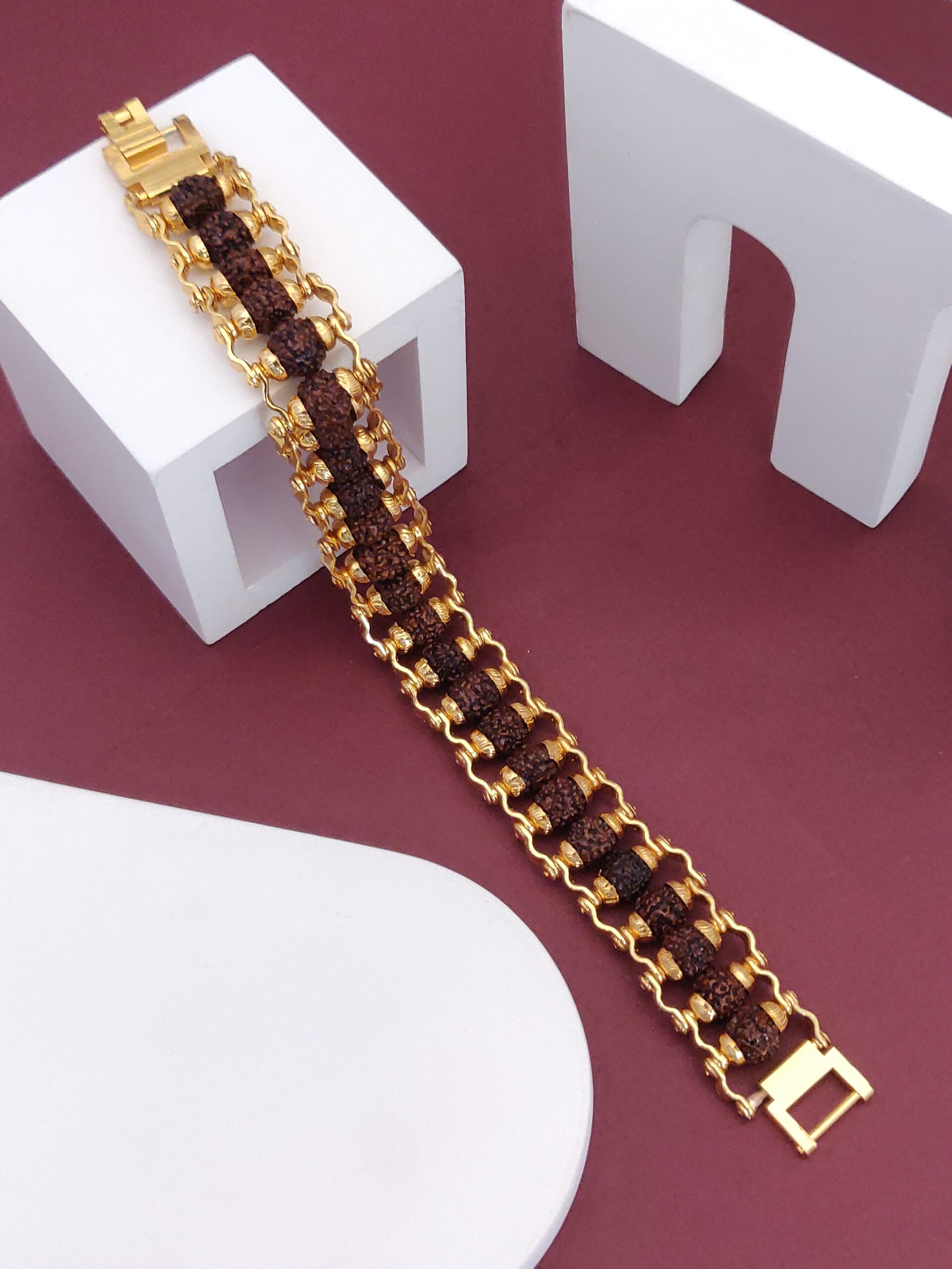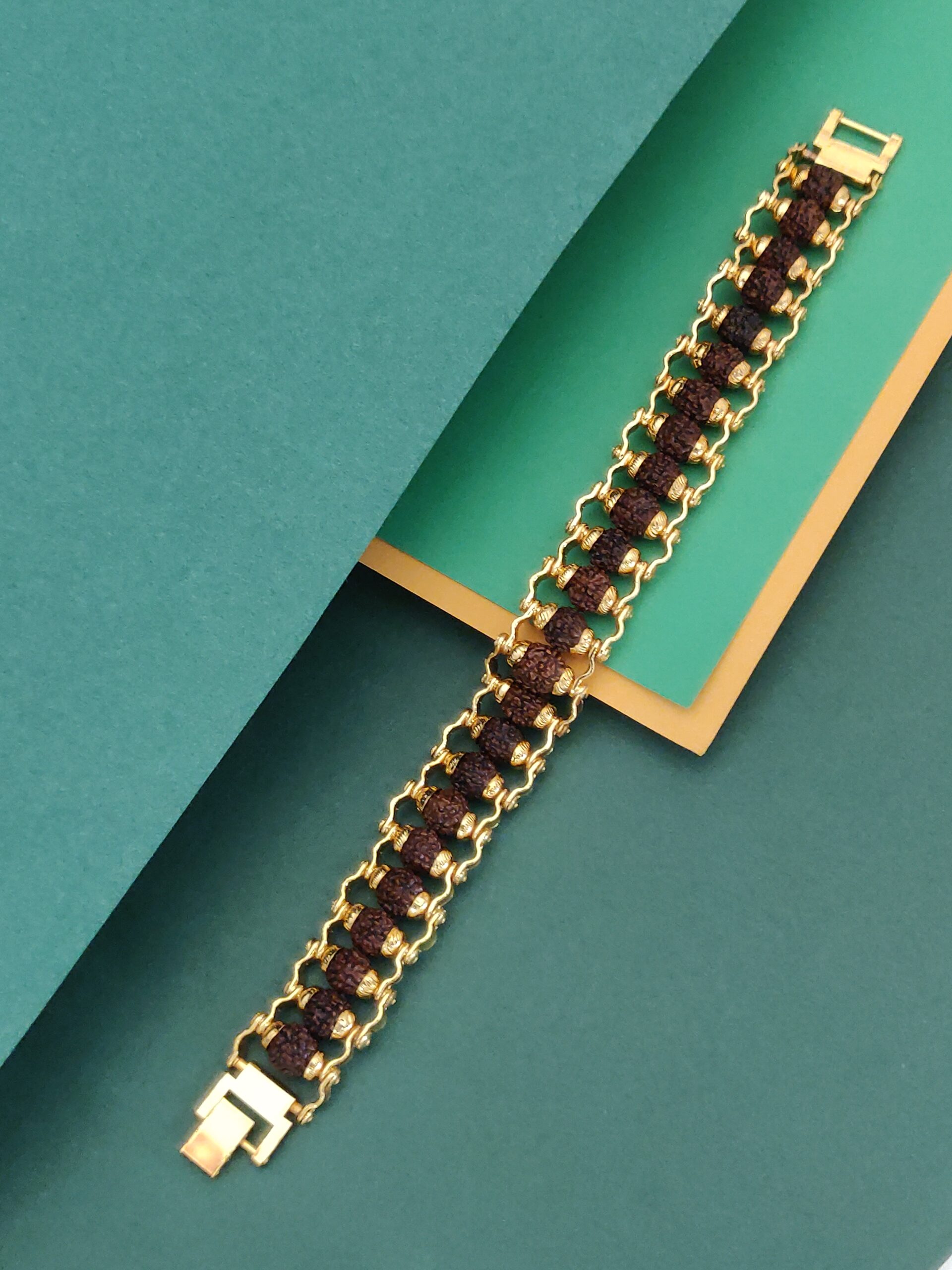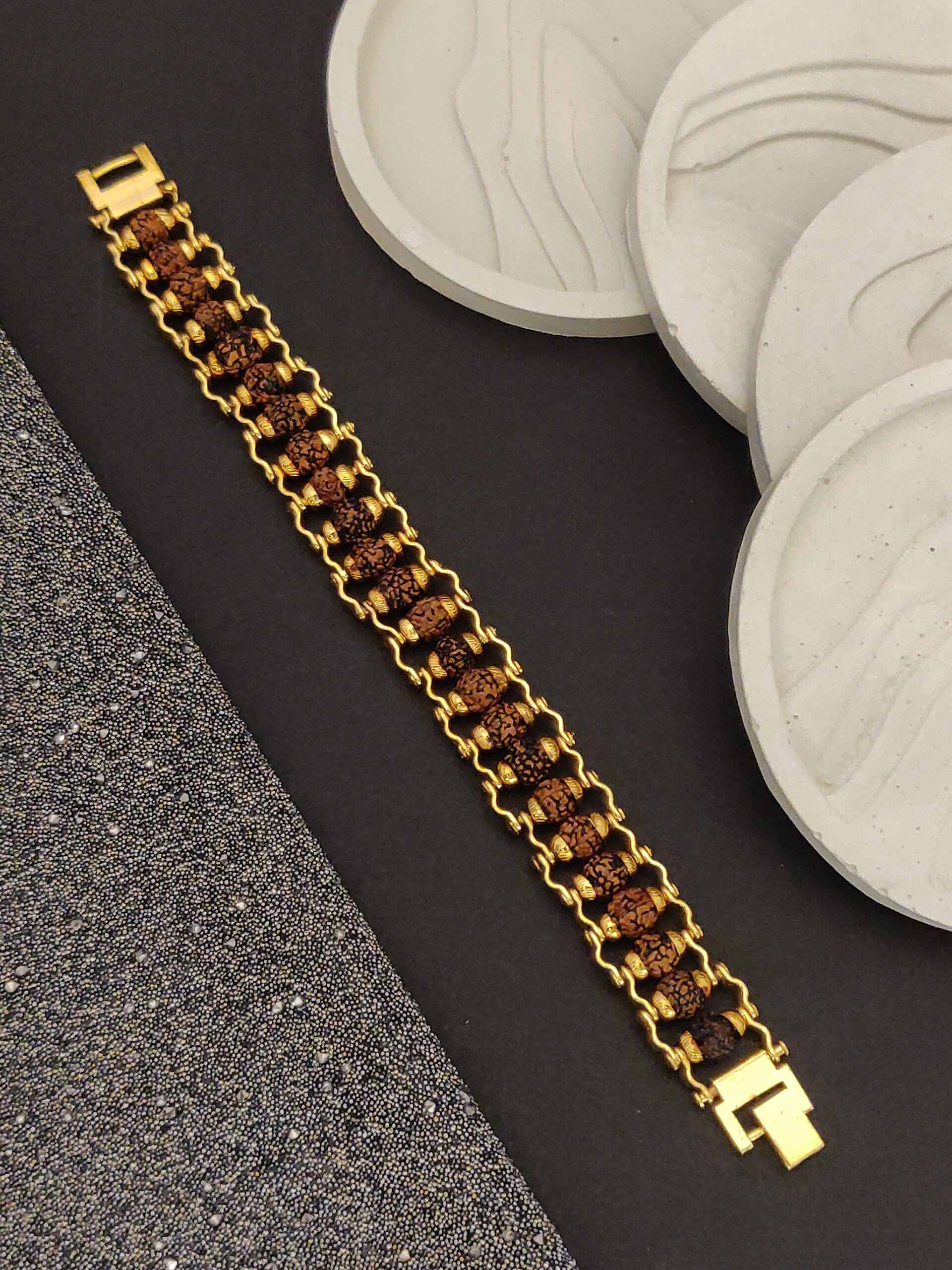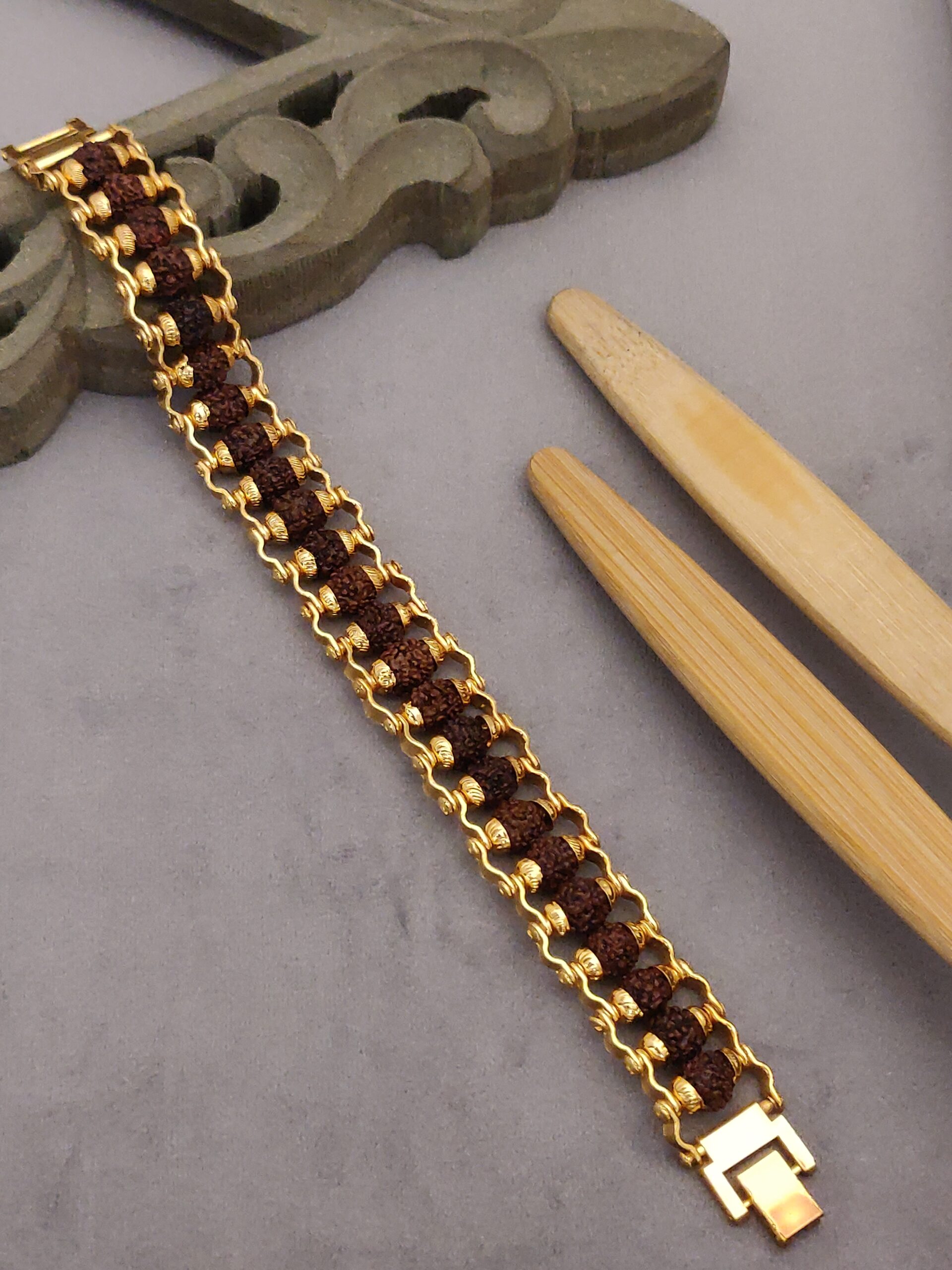 Adorn yourself with our Designer Gold Plated Rudraksha Bracelet and experience the perfect combination of style and spirituality.