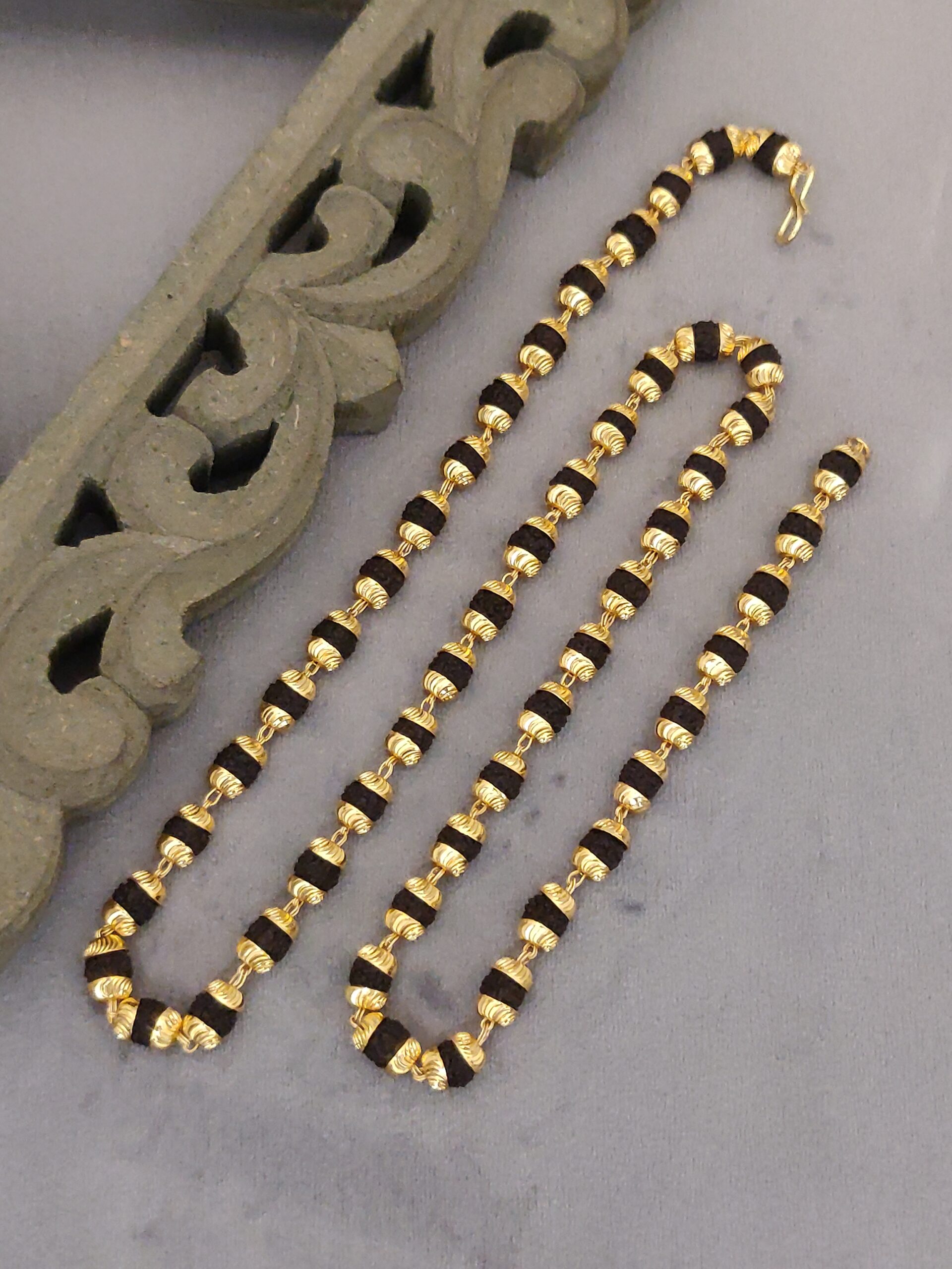 Embrace the timeless elegance of spirituality with the Gold-Plated Rudraksha Mala.