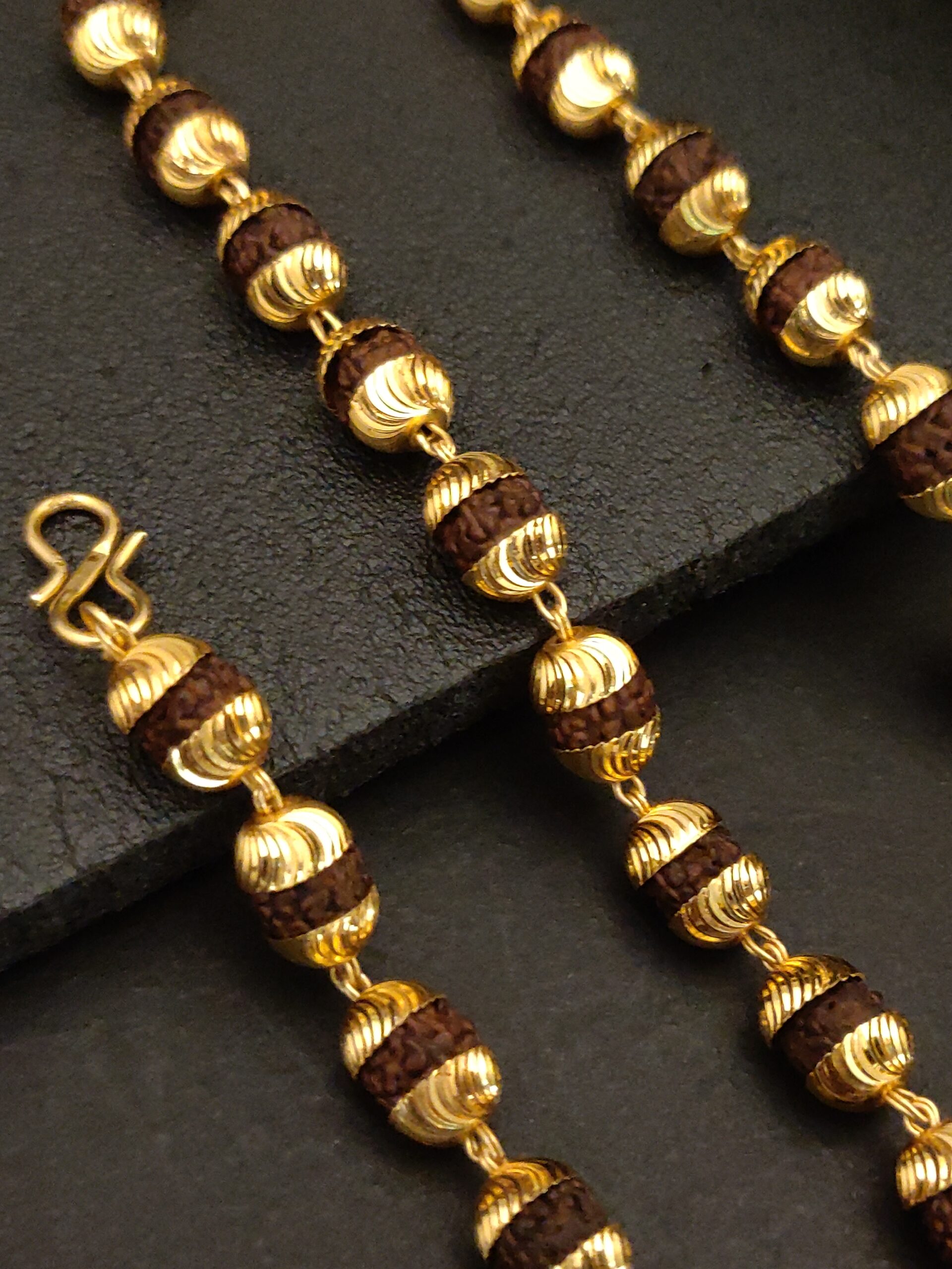 The gold plating on this Rudraksh mala is stunning.