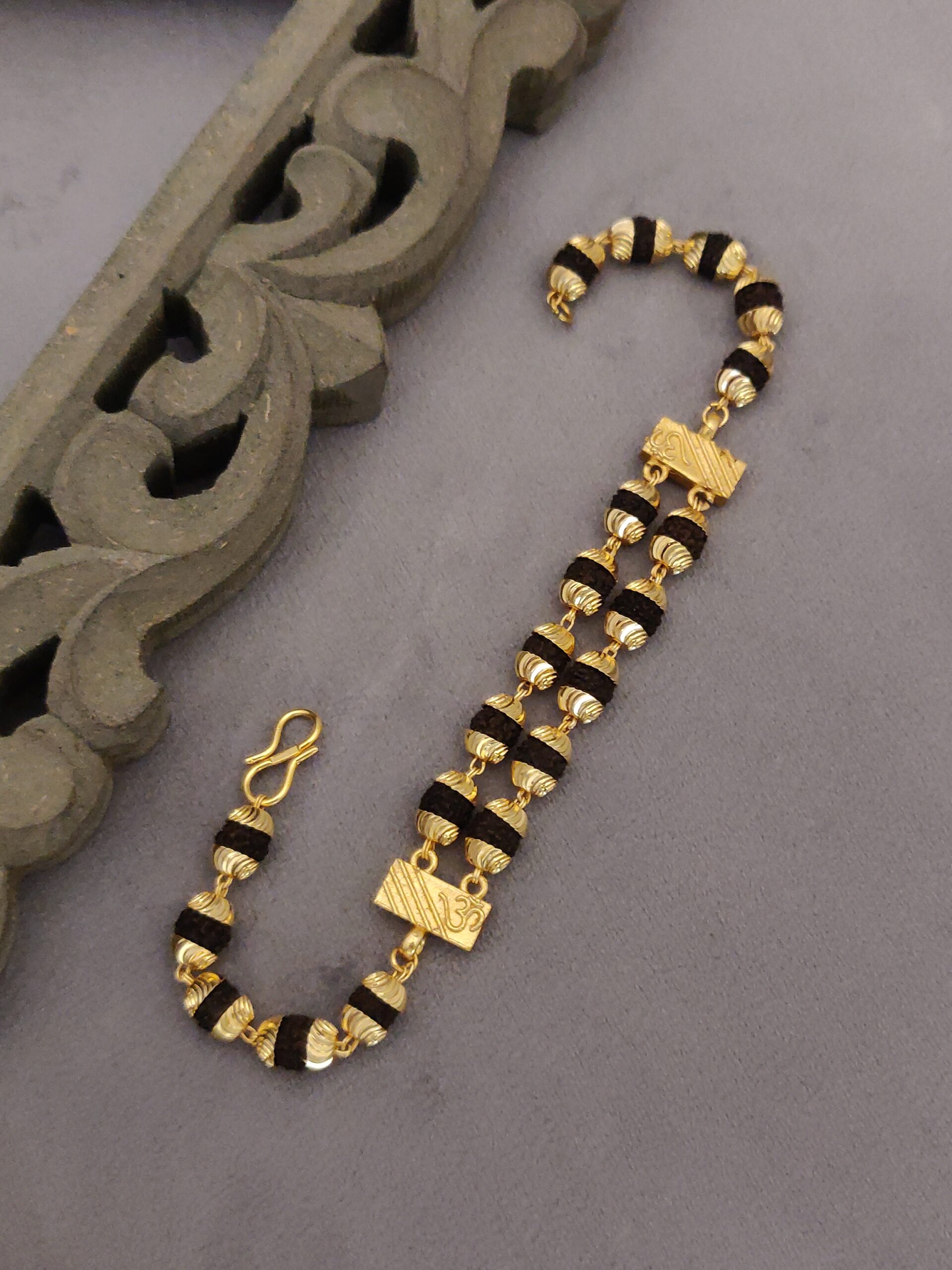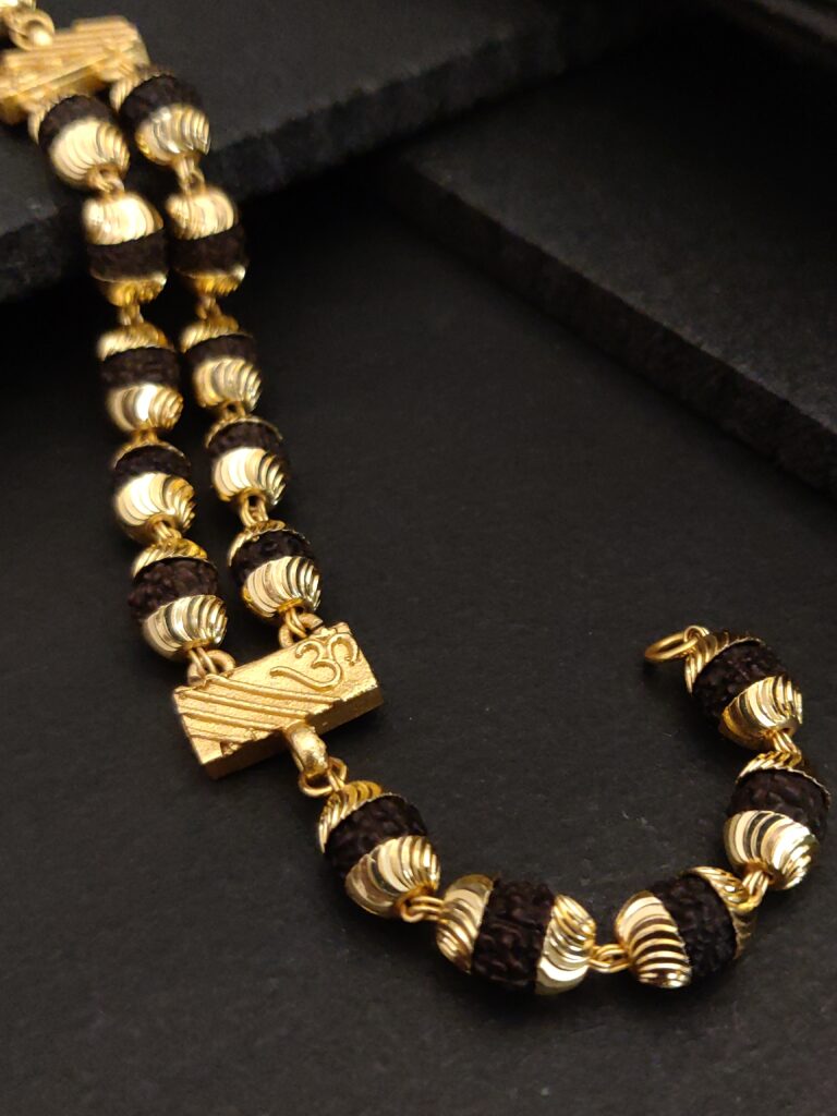 Discover the perfect blend of elegance and spirituality with our Elegant Gold-Plated Cubio Rudraksha Bracelet for woman.