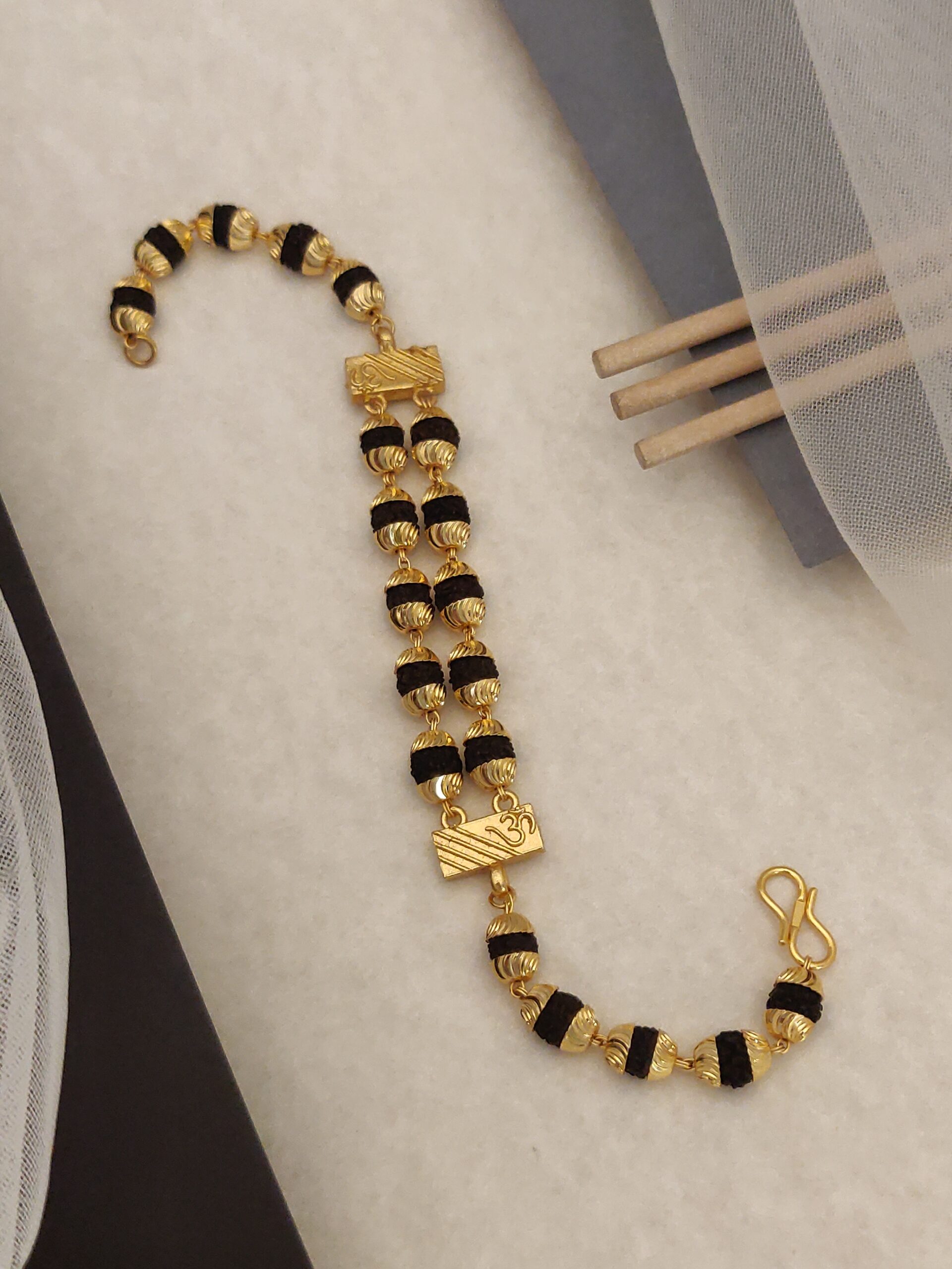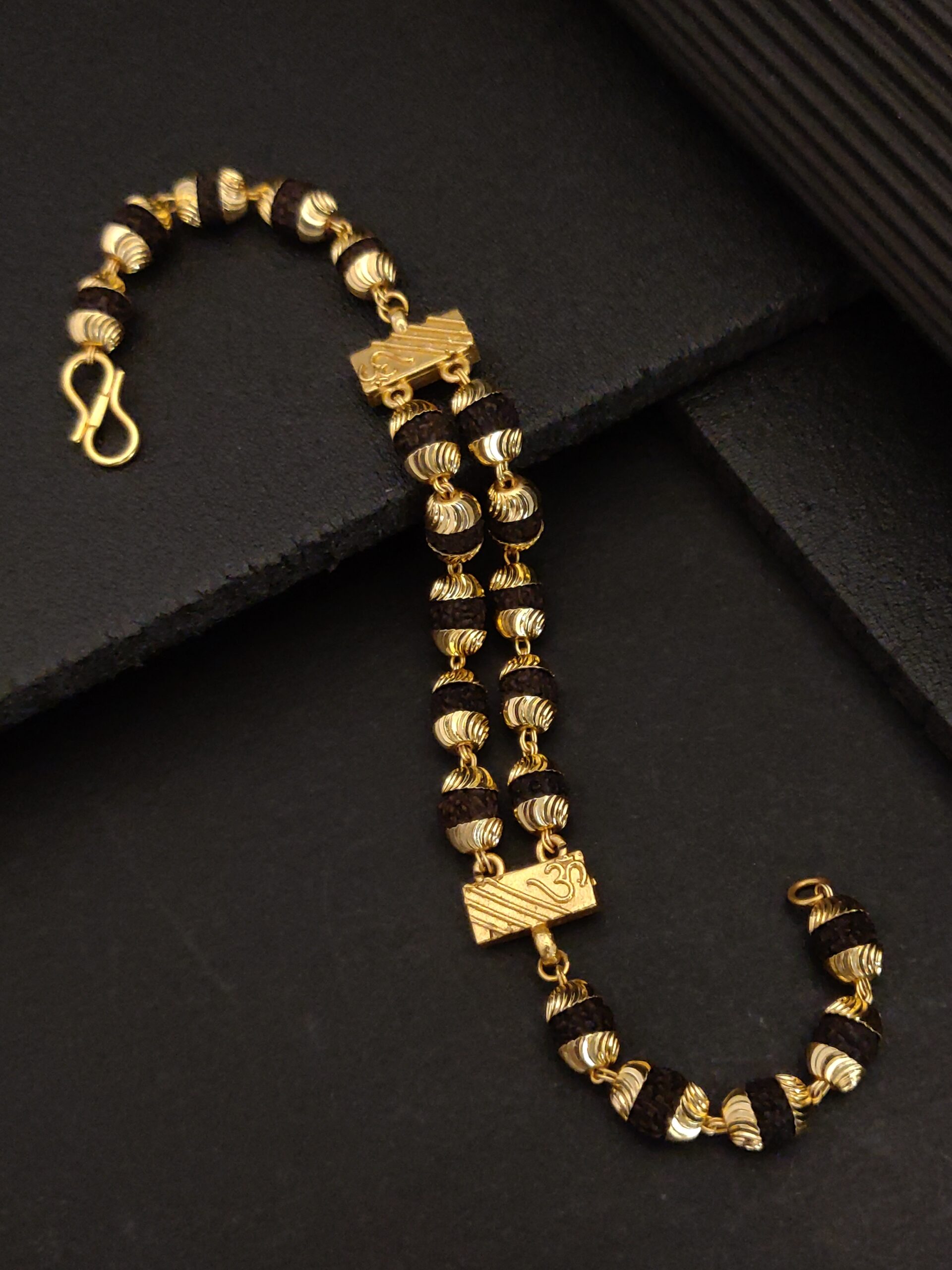 Gold Plated Vertical Double Line Rudraksh Bracelet ek shakti aur sundarta ka aisa sangam hai jo har pal aapko unique aur stylish banata hai.