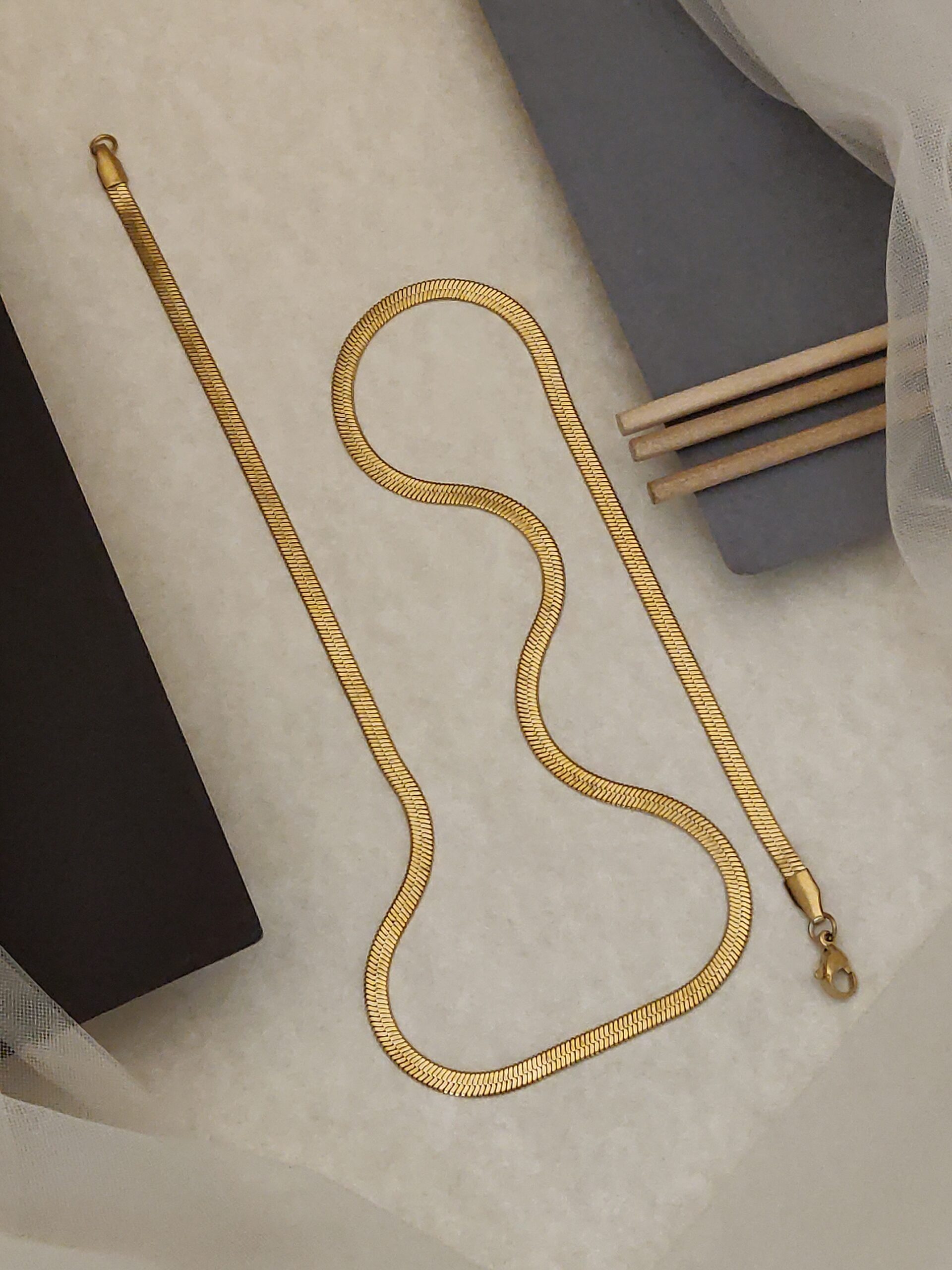 यह गोल्डन स्नेक चेन बहुत ही एलिगेंट और स्टाइलिश है, हर आउटफिट के साथ परफेक्ट लगती है।