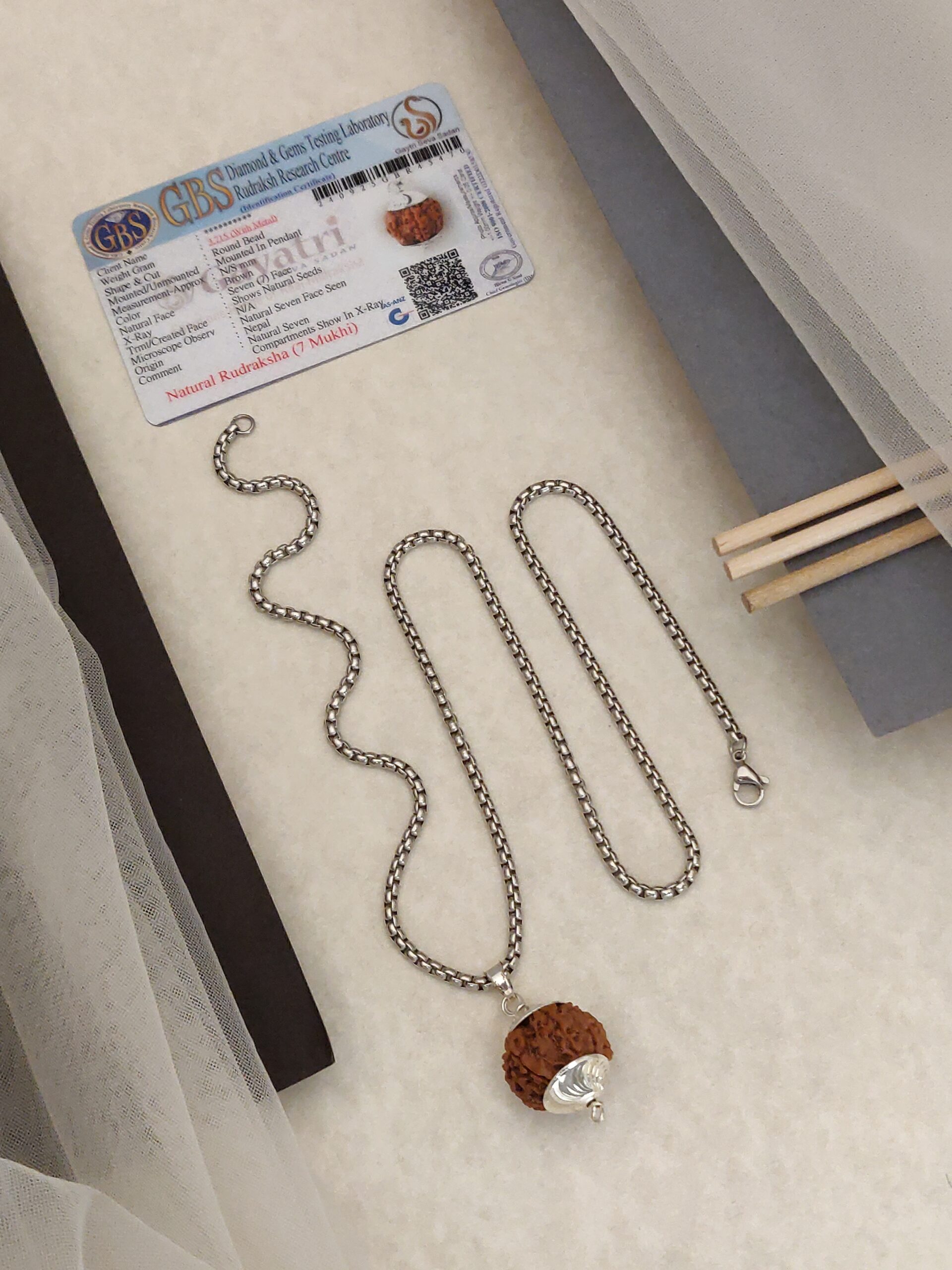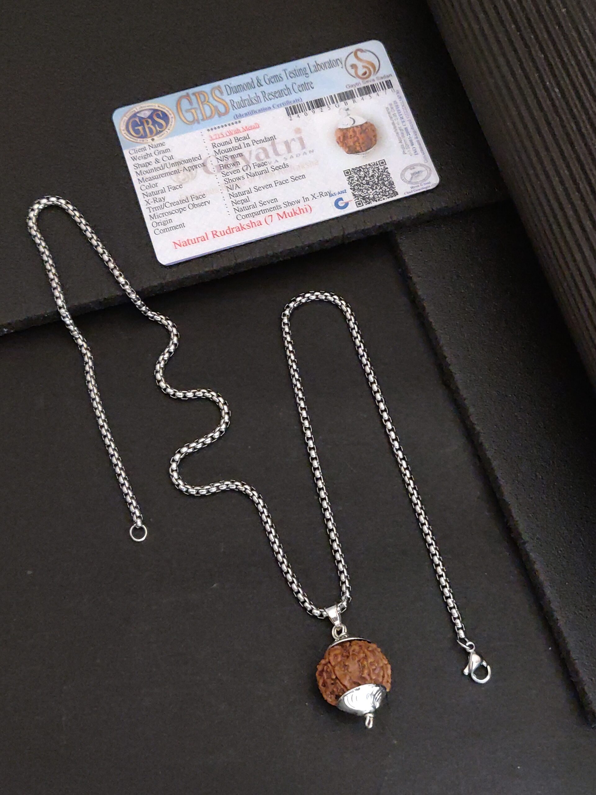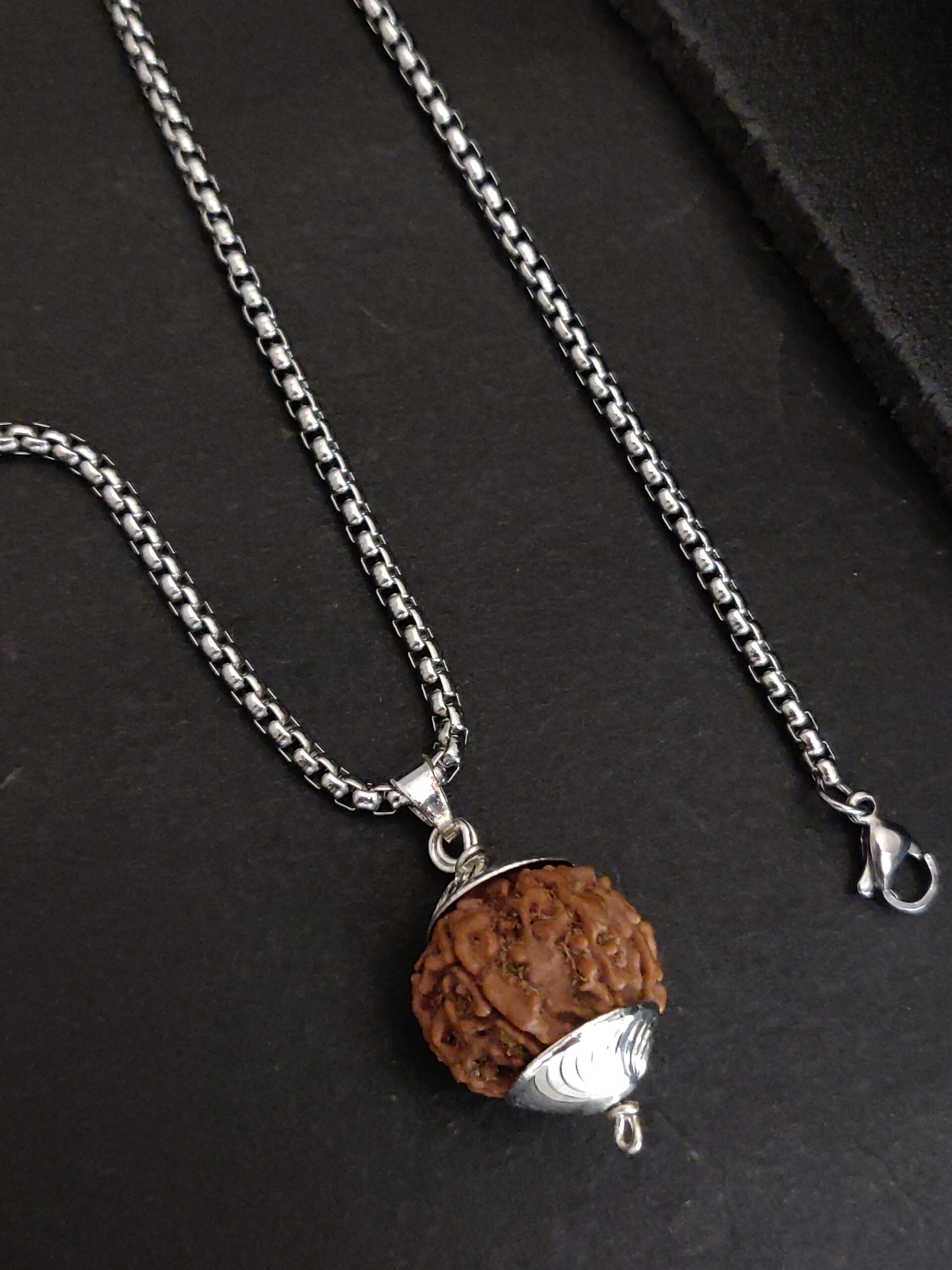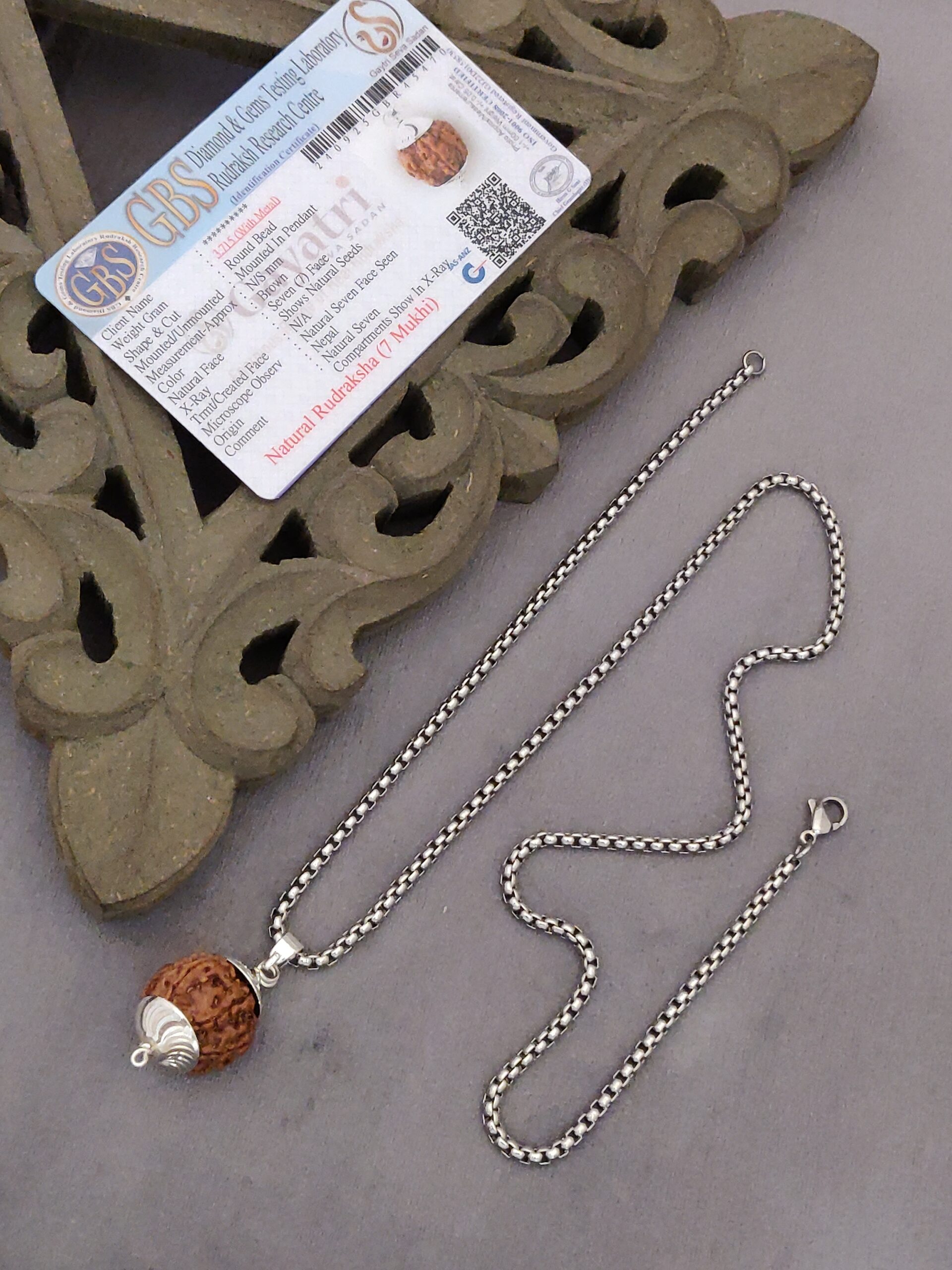 This 7 Mukhi Rudraksha Pendant, paired with a sleek Silver-plated chain, is a powerful symbol of spiritual balance and prosperity.