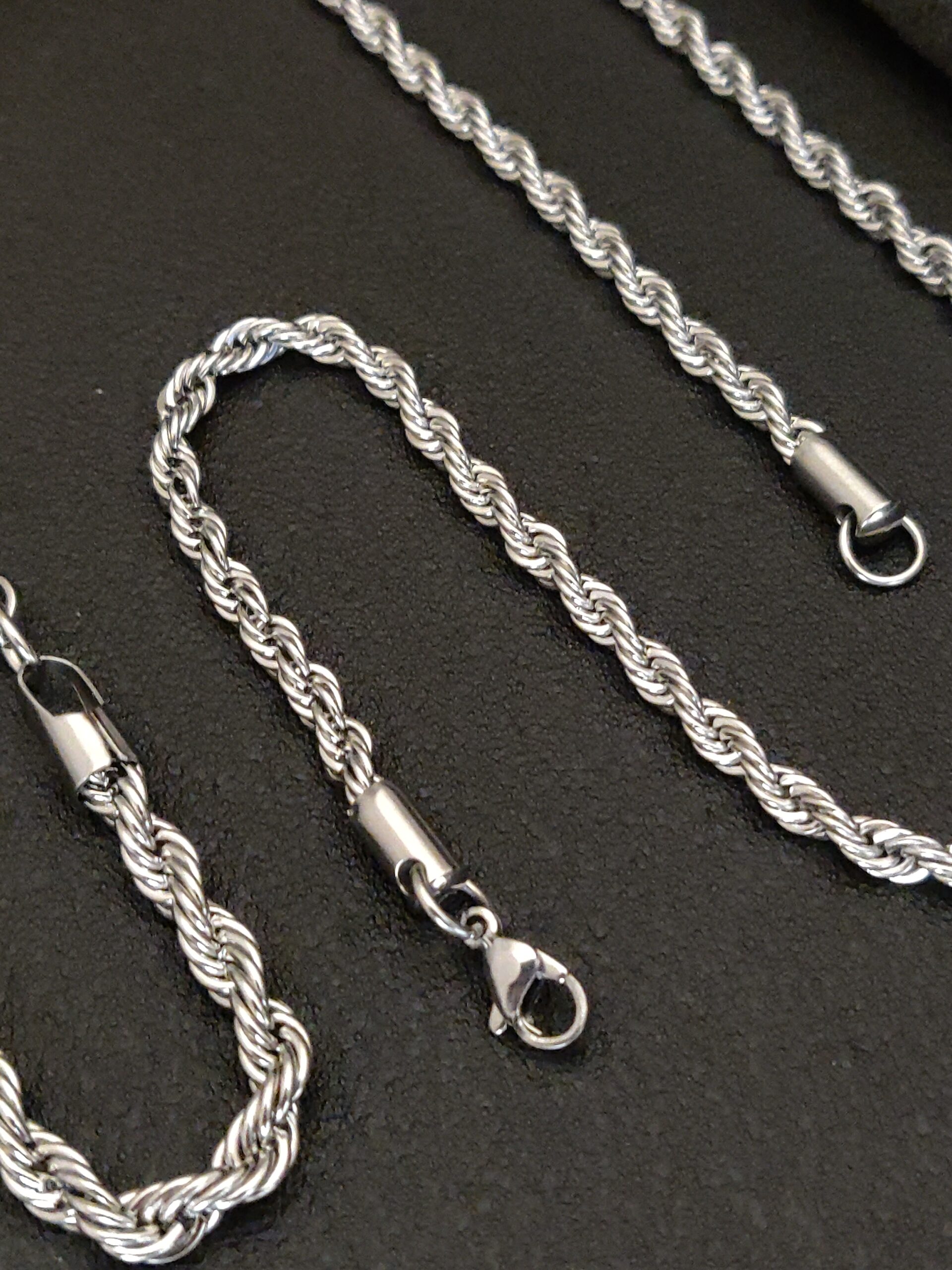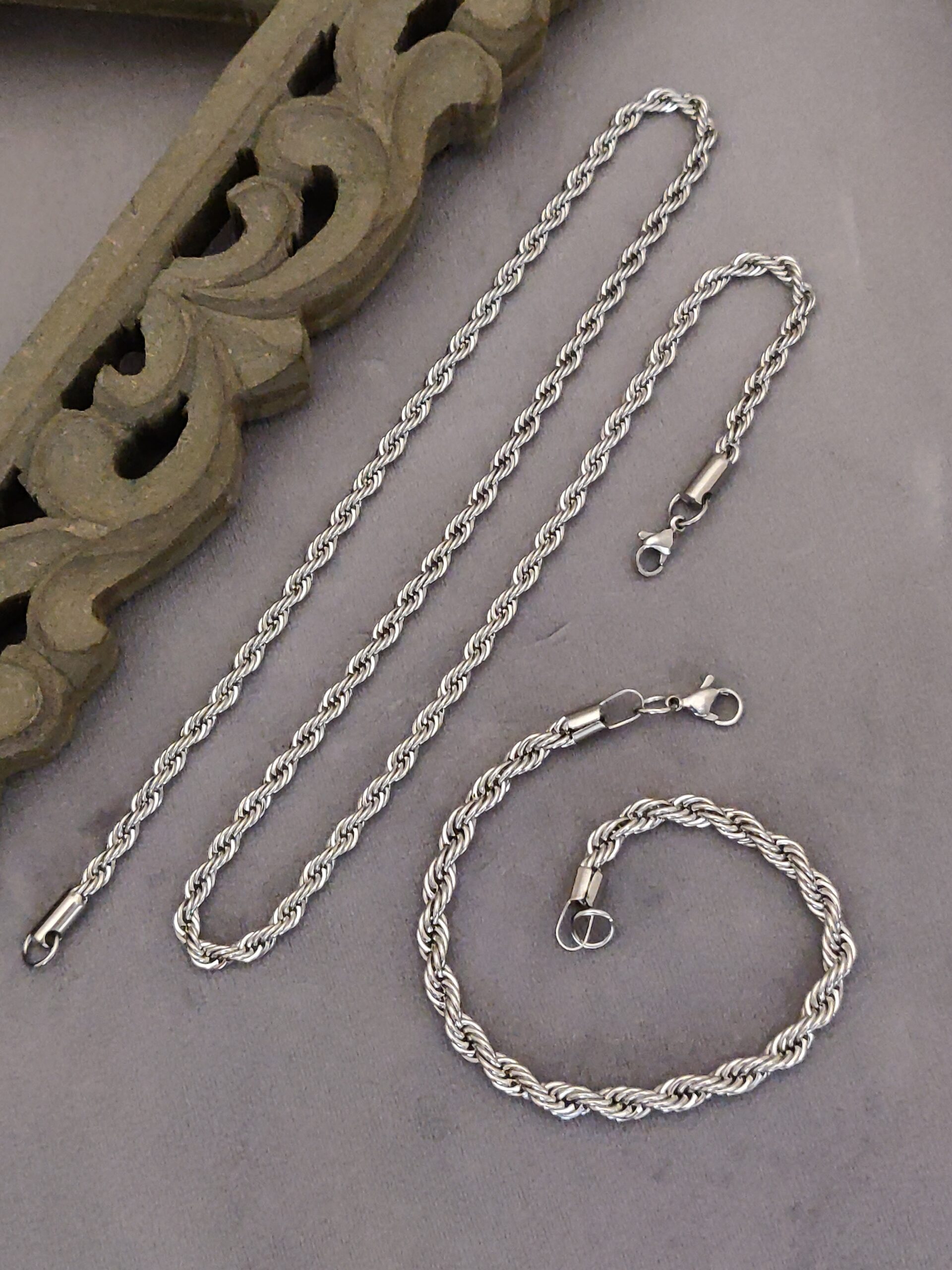 Silver Plated rope design combo set एक premium chain और bracelet का elegant combination है, जिसे modern style और royal appearance को ध्यान में रखकर design किया गया है। इसका classic rope pattern design इसे bold, stylish और timeless look देता है, जो हर occasion के लिए perfect है।