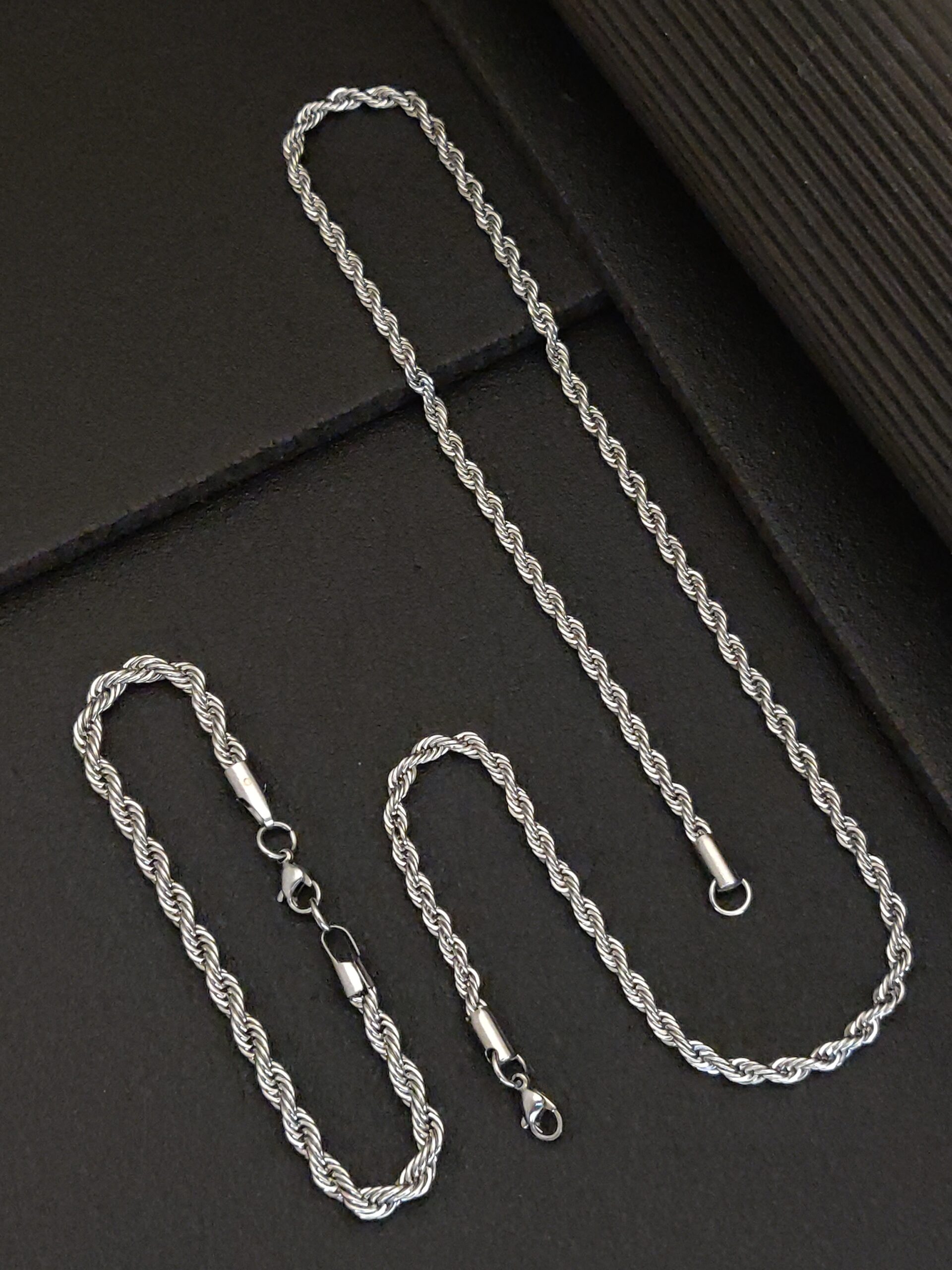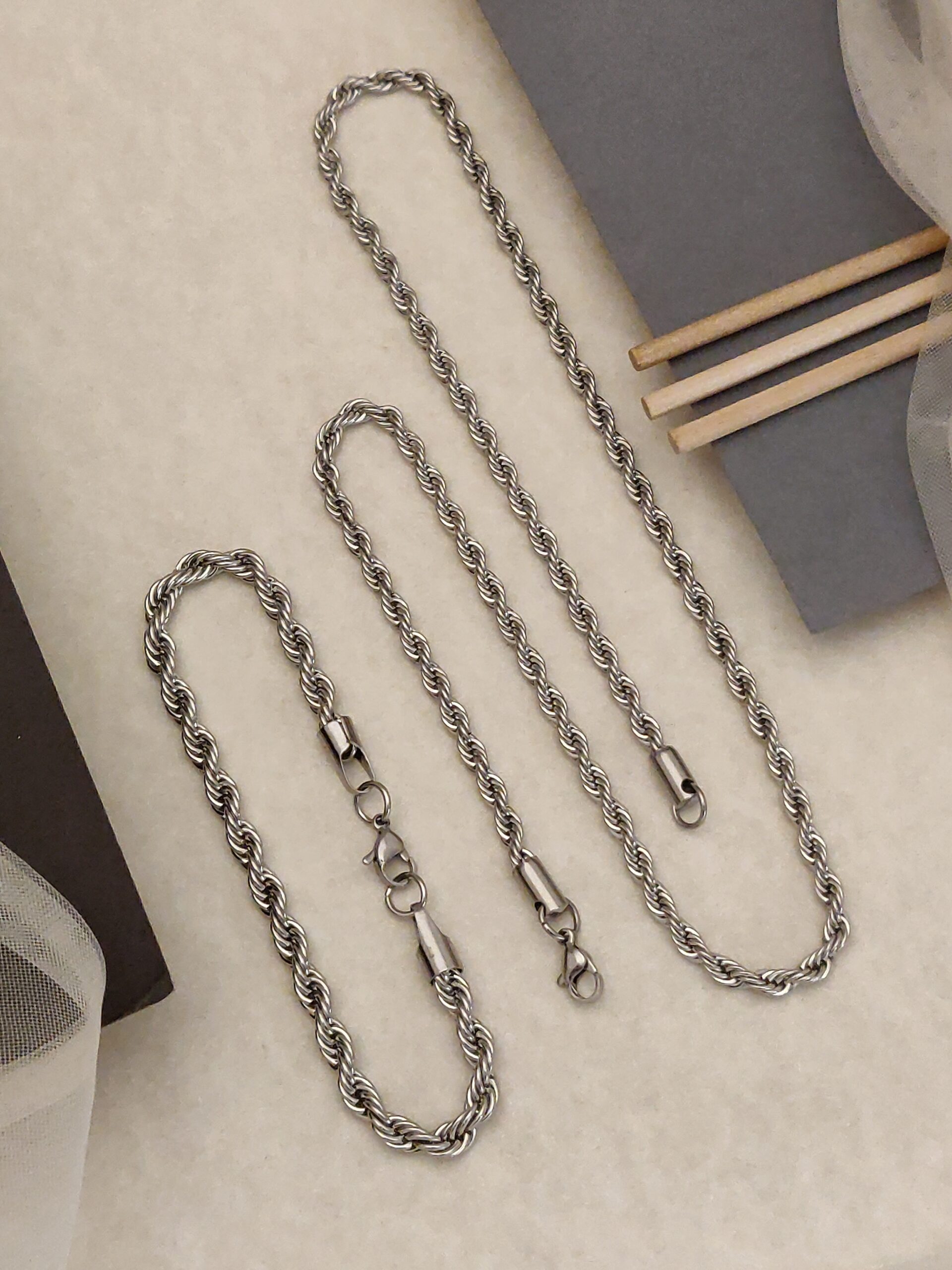 इस combo में high-quality Silver polished coating दी गई है, जो इसे real Silver जैसी shine और smooth, rich finish प्रदान करती है। Chain और bracelet दोनों को carefully craft किया गया है ताकि यह पहनने में comfortable होने के साथ-साथ लंबे समय तक टिकाऊ भी रहे।
