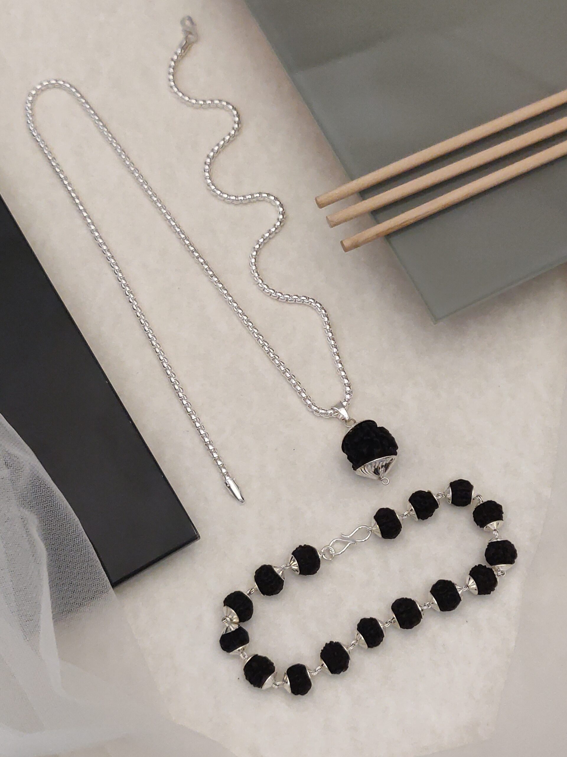 The bracelet and pendant feature authentic Rudraksha beads, believed to promote peace, positivity, and protection.