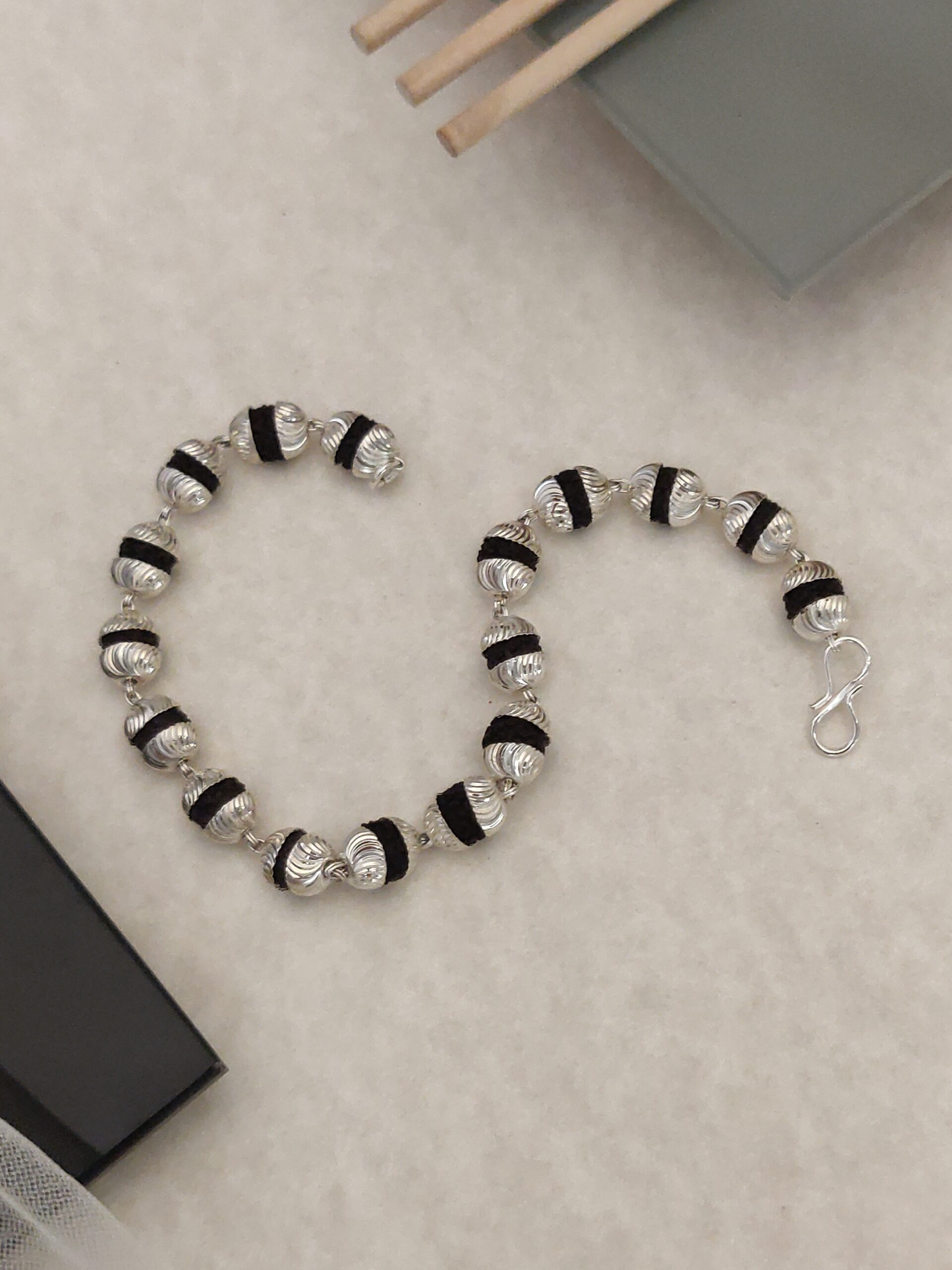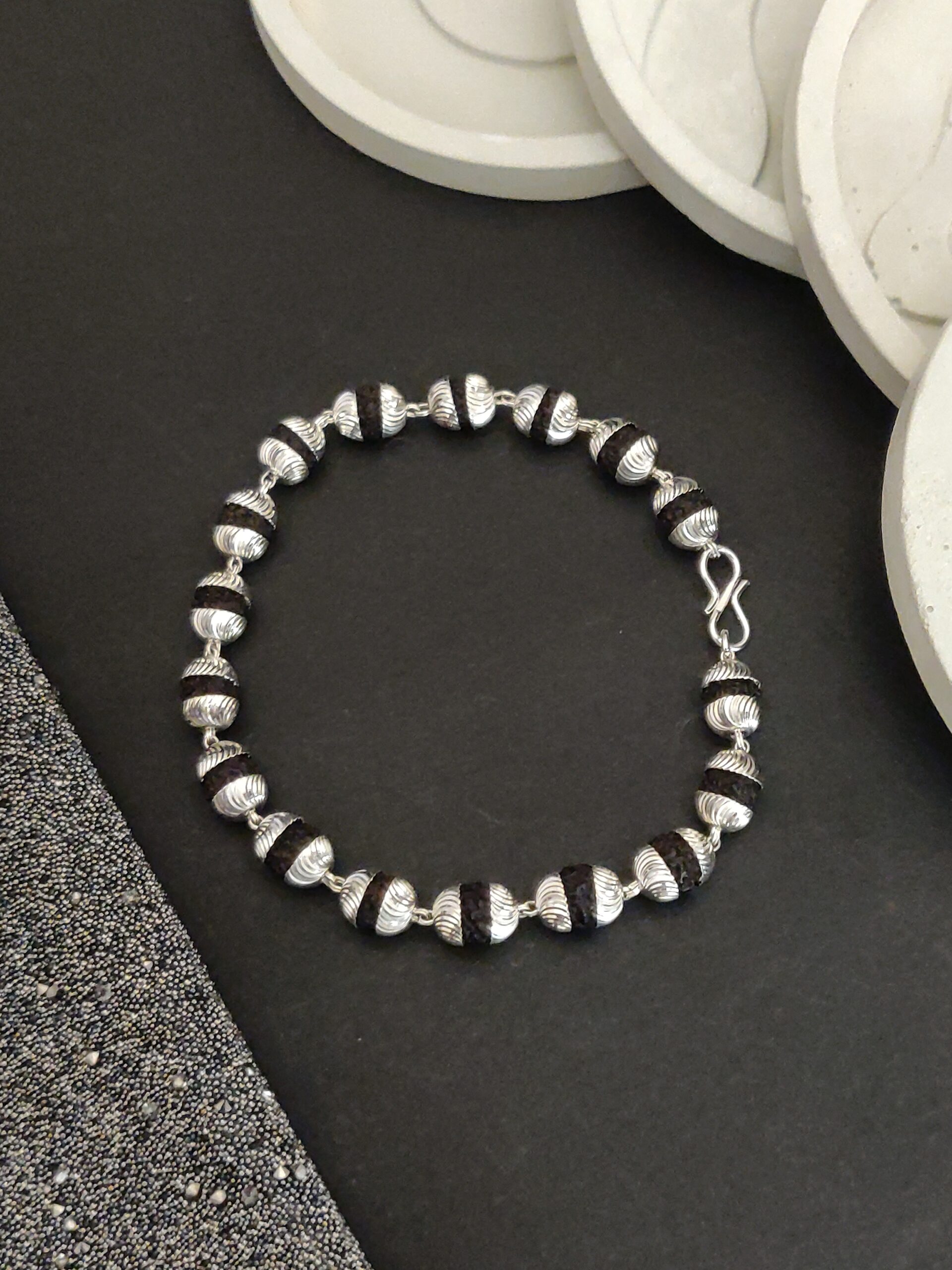 Our Silver Plated Rudraksha Bracelet offers a perfect harmony of spirituality and elegance.