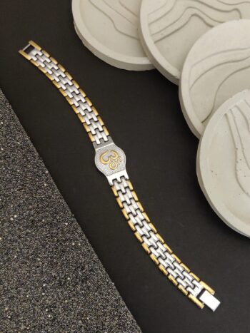 ₹799.00Original price was: ₹799.00.₹510.00Current price is: ₹510.00. - Gold Silver triple name Ohm bracelet